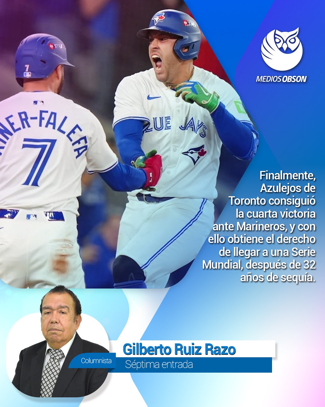 LISTOS.- Finalmente Azulejos de Toronto consiguió la cuarta victoria ante Marineros, y con ello obtiene el derecho de llegar a una Serie Mundial, después de 32 años de sequía. Enfrentar a Dodgers que tiene días esperando conocer al rival de Liga Americana. El Clásico de Otoño, y tal vez de Octubre, iniciará el viernes 24 que se acerca. Todos los juegos serán a las cinco de la tarde hora nuestra.