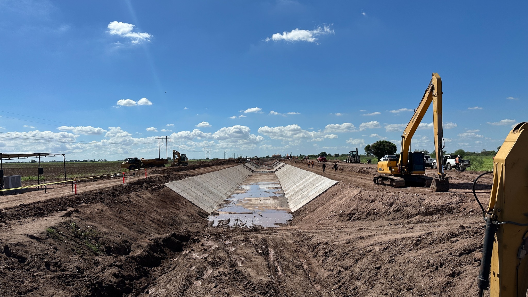 Las labores incluyen el revestimiento de aproximadamente 20 kilómetros de canales, la colocación de diez compuertas nuevas y la nivelación de mil hectáreas, además de otras estructuras hidráulicas que reforzarán la red de distribución del distrito.