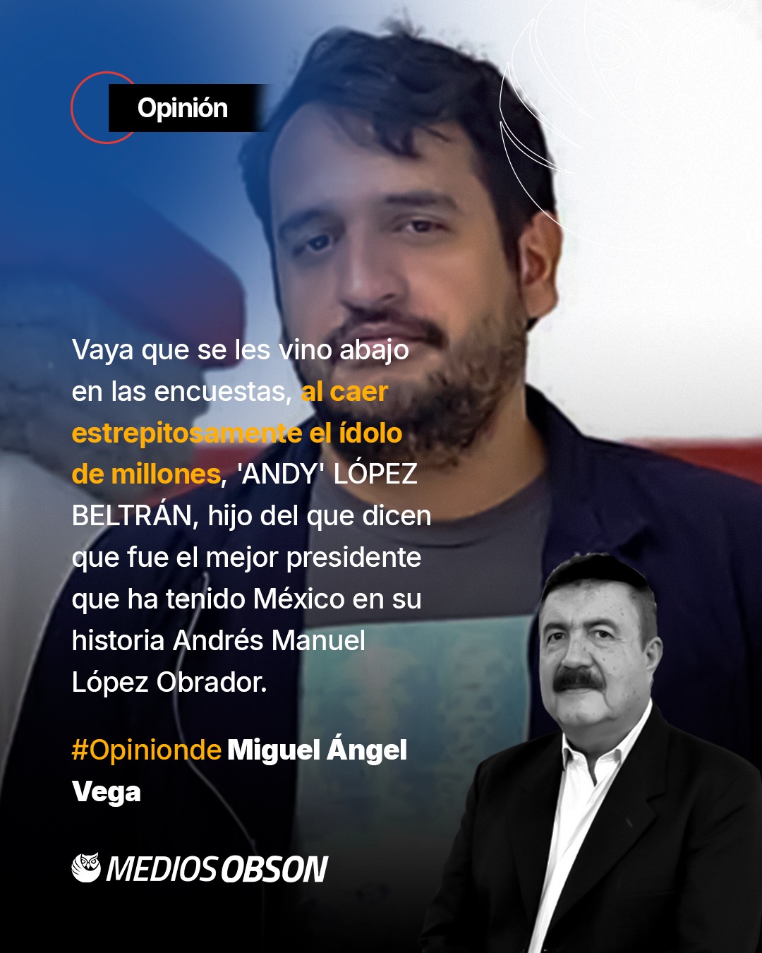 Vaya que se les vino abajo en las encuestas, al caer estrepitosamente el ídolo de millones de ‘cuatreros’ ‘ANDY’ LÓPEZ BELTRÁN, hijo de ese que dicen que es el mejor presidente que ha tenido México en su historia ANDRÉS MANUEL LÓPEZ OBRADOR. Y es que no era para menos, aquel junior, hijo del semidiós de millones de morenistas, empezó a sacar las uñas y a mostrar sus dotes de ladrón a lo grande y gastador como si trabajara, dándose una vida de millonario después de provenir de una familia tabasqueña que sólo sobrevivía económicamente. Y las consecuencias no se hicieron esperar, los mexicanos nos empezamos a dar cuenta, incluidos los de Morena, donde el chamaco que es secretario de Organización del Comité Nacional, al lado LUISA MARÍA ALCALDE LUJÁN, dirigente nacional de ese partido, que el junior salió muy ‘largo’ de tal suerte que en las últimas encuestas salió por los suelos, con eso de que pretendían lanzarlo a la candidatura a la presidencia de la república en el 2030. Claro esto de cualquier forma, era sin mérito alguno, solo por ser hijo de ya saben quién. Pero, por lo visto esos proyectos por lo pronto ya se les vinieron abajo, porque salió en claro que el muchacho y algunos de su pandilla, fueron los artífices del robo multimillonario del huachicol fiscal y que le gusta ir a hospedarse a Tokio, Japón, en hoteles con costos estratosféricos, pasándose por el arco del triunfo aquello de la austeridad republicana, pobreza franciscana y otros cuentos más con los que su padre tenía embaucados a millones de mexicanos. Así que quienes añoraban ver a su ídolo ‘Andy’ en las boletas del 2030 como candidato a la Presidencia, todo indica que se quedarán con las ganas……………Pobladores de la cabecera municipal de San Ignacio Río Muerto y sus pueblos, claman fumigación y atención integral de parte de las autoridades de salud, en contra del dengue donde aseguran los habitantes del lugar, han proliferado los casos de la peligrosa enfermedad e incluso al menos una joven ha muerto, pero nos dicen que hay varios casos graves, debido al descuido de las autoridades. Ante lo cual piden encarecidamente al jefe del Distrito 04 de Salubridad MARCO ANTONIO BARRÓN PERALTA, que los escuche, pero sobre todo que los atienda, porque la situación se está tornando grave, tan grave que ese municipio relativamente pequeño, de acuerdo al número de habitantes, es uno en los que se han presentado más casos de dengue, ante la pasividad de las autoridades. Al ser cuestionado al respecto el alcalde ABEL GONZÁLEZ AMBRIZ, dijo que se ha hecho lo humanamente posible, pero el municipio no cuenta con los recursos, ni con los equipos, para hacerle frente al problema, sin embargo, el doctor Marco Antonio Barrón, no ha atendido el problema que crece y crece cada día más, ante la desesperación de la población. Y es que al decir de la gente, en lo que concierne al Seguro Social y la Secretaría de Salubridad, así como los servicios médicos que se prestan de Isssteson, en la localidad, son demasiado precarios para atender a la población y generalmente no cuentan ni con paracetamol, mucho menos para darse abasto atendiendo tantos casos de Dengue que se presentan a diario. Y sobre los consultorios médicos particulares, también son escasos y en las últimas semanas han estado saturados de pacientes con la enfermedad, a los cuales se les suministra suero y otros medicamentos, pero eso le cuesta al paciente. Ante lo cual, según pudimos palpar, es necesario que las autoridades estatales y federales de salud, se pongan las pilas y pongan manos a la obra, antes que siga muriendo más gente, por el abandono en que se encuentran en el tema de salud, ya que los focos de infección abundan y en la cabecera municipal y las poblaciones rurales, los mosquitos Aedes Aegypti, se alcanzan a apreciar, no unos cuantos insectos, sino como nubes en el ambiente, cuyos aires los propagan dentro y fuera de los hogares, por lo que la situación es demasiado grave y requiere de atención urgente…………… No cabe duda que las cosas caen por su propio peso. Y a los hechos no les ganan las palabras. Resulta que a alguien se le ocurrió subir al Facebook una pregunta, de cuál de las tres mujeres siguientes le gustaría ver en la boleta y por cual votaría en el 2027. Ellas son MATILDE LEMUS, del Ayuntamiento local; la diputada DENI GASTÉLUM BARRERAS y finalmente la diputada local también ERNESTINA CASTRO VALENZUELA. ¿Y qué creen?. El 99.99 por ciento de los votos se inclinaron más o menos parejo entre Maty Lemus y Deni Gastélum, en tanto a Ernestina Castro, la mandaron por un tubo. ¿Y porque cree usted, que la gente haya reaccionado así en su contra? Pues muy sencillo. Doña Ernestina es la tercera ocasión que es diputada local y no ha hecho nada por los cajemenses. Y solo se dedica a esperar la quincena para caerle al cajero automático por la lana. Esta que sí saldrá del Congreso Local, sin pena ni gloria, le podemos decir sin temor a equivocarnos que al mismo estilo del diputado HÉCTOR RAÚL ‘EL POLLO’ CASTELO, que tiene exactamente la misma trayectoria de doña Ernestina en el poder legislativo, donde no ha aportado nada y para lo único que tiene gracia es para organizar las cabalgatas ‘Con Aroma de Mujer’ que las usa para promocionarse, pero al pueblo no le dejan más que el polvo por donde van pasando…………… El que insistimos en que tiene los días contados, se llama NICOLÁS MADURO MOROS y se desempeña como presidente de la república de Venezuela. Lo anterior de que el presidente de los Estados Unidos, ya lo tiene prácticamente rodeado, toda vez que por un lado ya lleva 10 embarcaciones bombardeadas con la muerte de alrededor de 50 personas, pero lo más grave para el dictador, seguidor del tirano HUGO CHÁVEZ, es que un portaviones gringo ya se encuentra a unos cuantos kilómetros de los litorales venezolanos con decenas de aviones de g