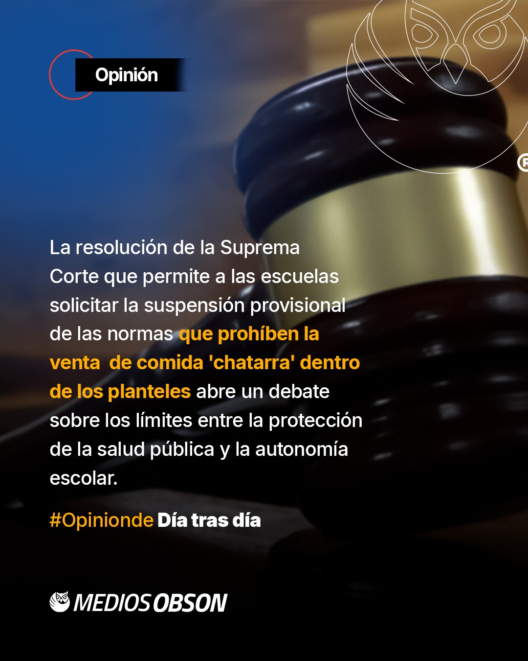 La resolución de la Suprema Corte de Justicia de la Nación que permite a las escuelas solicitar la suspensión provisional de las normas que prohíben la venta de alimentos ‘chatarra’ dentro de los planteles introduce un debate relevante sobre los límites entre la protección de la salud pública y la autonomía institucional. Si bien las restricciones impuestas por la Secretaría de Educación Pública y publicadas en 2024 buscan fomentar hábitos alimenticios saludables en niñas, niños y jóvenes, también es cierto que su aplicación indiscriminada puede generar afectaciones administrativas y económicas a las propias escuelas. El proyecto, elaborado por la ministra Yasmín Esquivel Mossa y aprobado por mayoría del Pleno, no implica que se avale la venta libre de productos procesados, sino que reconoce el derecho de los centros educativos a defenderse de disposiciones que consideren excesivas o mal implementadas. La Corte, en este caso, actúa como árbitro entre el deber del Estado de promover la salud y el derecho de las instituciones a un trato justo. El reto será garantizar que esta apertura no debilite las políticas públicas de nutrición, sino que las refine bajo criterios más equilibrados y realistas.