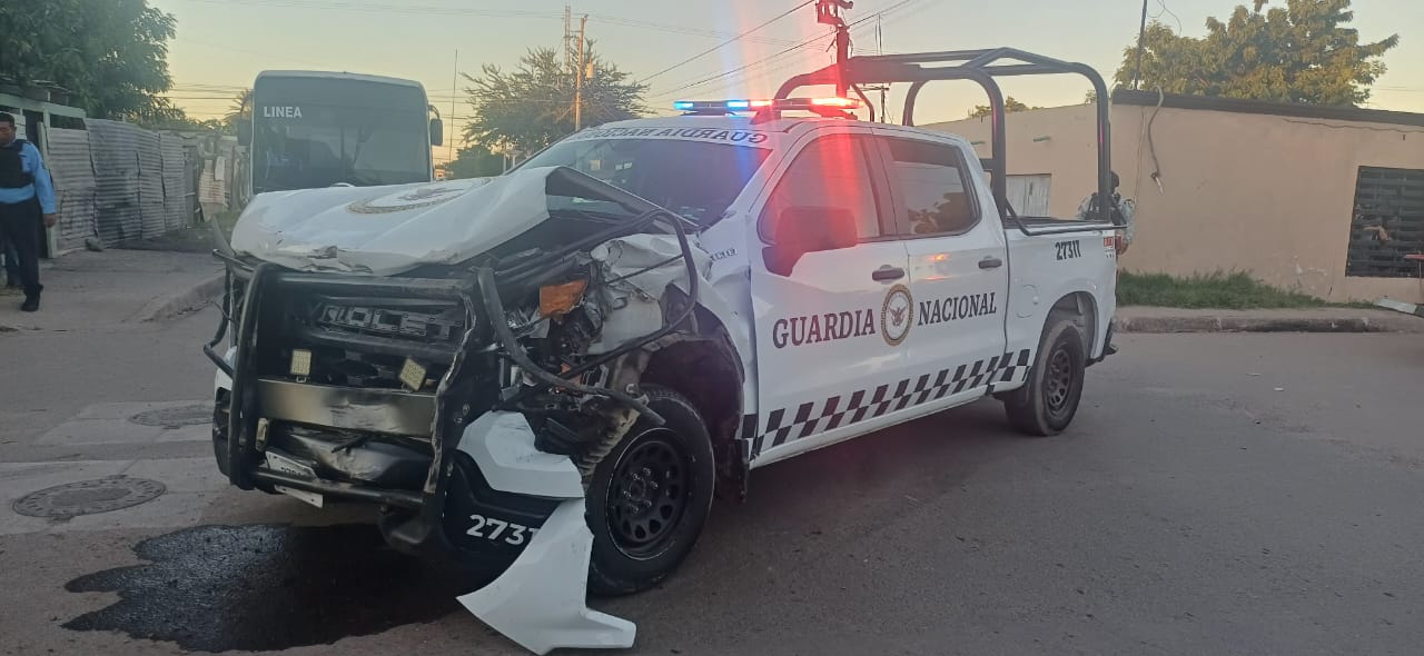 La falta de precaución del conductor de un pick up que no hizo alto propició que fuera chocado por una patrulla de la Guardia Nacional.