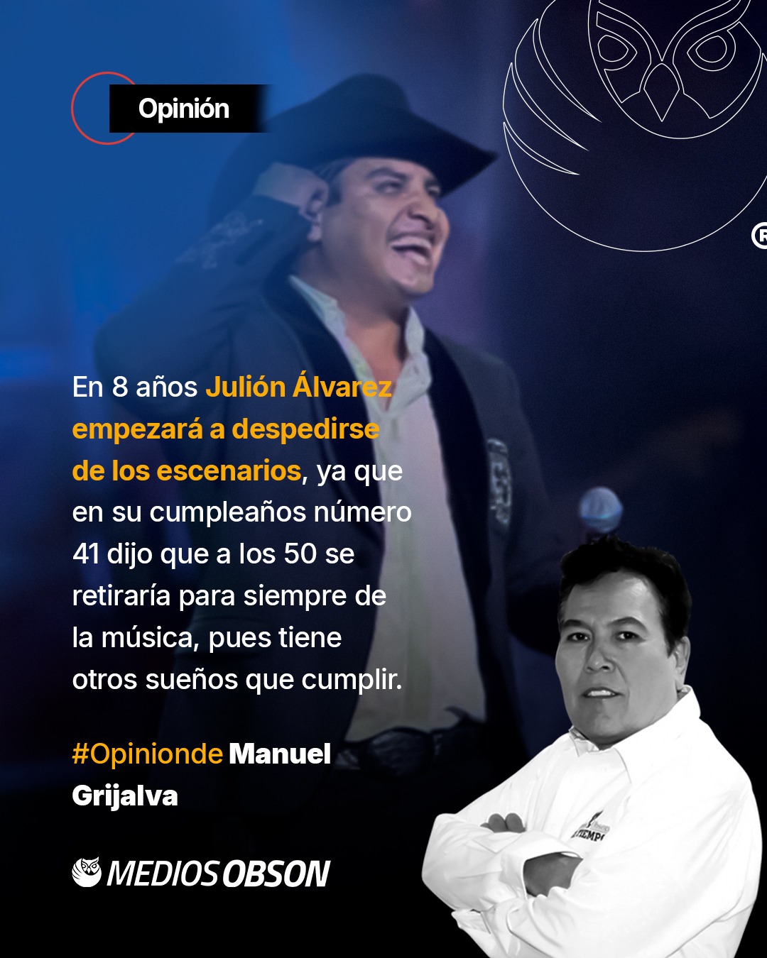 La libertad consiste en poder hacer todo lo que no daña a otro… En redes sociales se dice que Alejandro Fernández ha decidido ayudar con todo al hijo incómodo de Pepe Aguilar, noticia que al parecer es falsa, pues indagando por aquí y por allá me enteré que quien en realidad se ofreció en dar ese apoyo es Óscar Reyes Fernández, – sobrino de Vicente Fernández, – lo cual creo, pues en el pasado el primo de Alejandro Fernández sufrió de parte de su tío un bloqueo en su carrera para sacarlo del camino, pues esa fue la manera que el intérprete de ‘Lastima que seas ajena’ encontró para que ‘El Potrillo’ pudiera llegar a ser lo que hoy es… si Vicente Fernández le hizo eso al hijo de su hermana Refugio Fernández Gómez, – su sobrino, – ¿cuánta cosa no le haría a otros cantantes que en ese entonces buscaban sobresalir?, por fortuna hoy en día esas prácticas son difíciles de llevar a cabo, por lo que han quedado en el pasado, bueno, – no tanto, – ya ven todo lo que Pepe Aguilar ha hecho para ‘encasquetarnos’ por todos los medios a su adorada hijita, a quien le ha comprado todos los premios habido y por haber, sin pensar siquiera que sin talento jamás podrá brillar, ni ser de las favoritas del público… es por eso que Óscar Reyes Fernández ha ofrecido ayudarle a Emiliano Aguilar prestarle sus servicios como mánager y que mejor que él, que ya sabe lo que se siente ser bloqueado y censurado en radios o en cualquier otro medio de comunicación, como quien dice, él ya tiene la experiencia necesaria por lo que sabe que hacer… Cuando estás loco, aprendes a guardar silencio… 8 años son los que faltan para que Julión Álvarez empiece a despedirse de los escenarios, digo, si no ha olvidado lo que dijo hace aproximadamente 1 año y 6 meses, eso en su cumpleaños número 41, no sé qué tan leal sea a sus palabras… no olvido que fue él mismo quien el jueves 11 de abril de 2024 dijo que a los 50 años se retiraría para siempre de la música, pues tiene otros sueños que cumplir, como el dedicarse a otros ámbitos y pasar más tiempo con su familia… el intérprete de ‘Terrenal’ asegura que al menos para él, ser cantante es muy agotador y desgastante, es por eso que no le gustaría retirarse siendo ya una persona de edad muy avanzada, es decir, no quiere andar como Lorenzo de Monteclaro, Rosendo Cantú, Lalo Mora o ‘Los Tigres del Norte’… lo que si sería bueno es que el llamado ‘rey de la taquilla’ vaya pensando en su presentación de despedida en esta ciudad, pues desde antes de que fuera acusado falsamente por el departamento del tesoro de Estados Unidos y desde antes de la pandemia no se ha venido a cantarnos sus canciones, creo que ya es hora que se acuerde de la gente que por acá lo quiere y pide a gritos su regreso… lo que sí puedo decir es que el cantante chiapaneco tiene su vida resuelta, pues tiene el suficiente dinero para vivir no una, sino varias vidas y en el país que a él le dé la gana… Que no se te vaya la vida imaginando otra… Con la presencia de Kakalo en el ‘Auditorio de las Estrellas’ el próximo domingo 23 de noviembre, es probable que al ser domingo se haga presente en nuestra ciudad Carin León para acompañar a su gran amigo, siendo probable que ambos cantantes interpreten ‘Tierra trágame’, canción con la que se encuentran nominados en los Latin Grammy, ¡ojalá y que eso sea posible!… Hace algunos años tenía un montón de sueños, ahora tengo sueño y un montón de años… Etcétera…