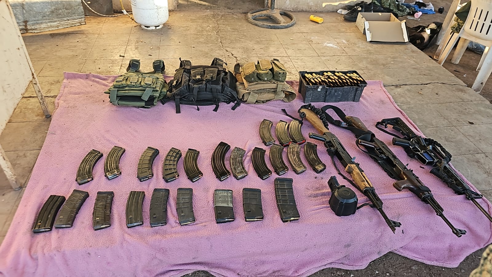 Durante la acción, el personal militar perteneciente a la curta Zona Militar localizó un sitio donde, según los reportes, se resguardaba un grupo armado. Al ingresar, los efectivos encontraron más de 40 artefactos explosivos, tres armas largas de alto poder, tres vehículos, más de 20 cargadores, así como chalecos antibalas con placas y una cinta de cartuchos calibre .50 para una ametralladora Browning.