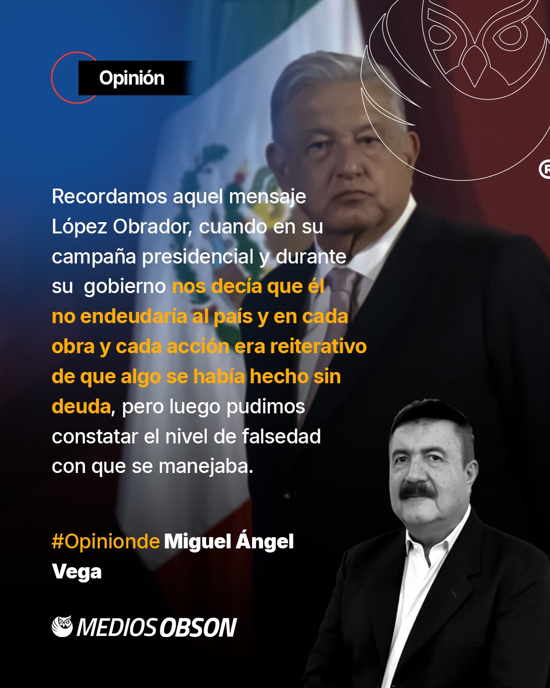En los siete años que lleva en el poder el gobierno de la 4T, ha duplicado la deuda externa, ya que cuando ENRIQUE PEÑA NIETO entregó el gobierno a ANDRÉS MANUEL LÓPEZ OBRADOR, el monto rondaba los 10 billones de pesos y cuando este último se lo entregó a CLAUDIA SHEINBAUM PARDO era ya de más de 18 billones, pero con la reciente aprobación de la nueva Ley de Ingresos para el 2026, se aprobó más de un billón de pesos de un nuevo endeudamiento, saltando al monto total de mas de 20 billones de pesos. Esto obligadamente nos hace recordar aquel mensaje tan insistente como hipócrita de López Obrador, cuando en su campaña presidencial y durante su  gobierno nos decía que él no endeudaría al país y en cada obra y cada acción era reiterativo de que algo se había hecho sin endeudar al país, pero luego pudimos constatar el nivel de falsedad con que se manejaba. Pero, también es menester traer a colación mensajes tan falsos, mentirosos y arrastrados como el del senador de Morena, MANUEL RAFAEL HUERTA LADRÓN DE GUEVARA, que de una forma descarada agarró el micrófono en el Senado para decir que se heredó una deuda maldita, cuyos recursos a diferencias de la 4T, no fueron utilizados ni para obras, ni para caminos, ni para escuelas, ni para nada en favor de los mexicanos. Por eso el senador RICARDO ANAYA CORTÉS se lo gritó muy clarito en el mismo Senado, de que si la deuda que heredaron de los prianistas fue maldita, la deuda externa duplicada a 20 millones que lleva acumulado el gobierno de la 4T, es una deuda endemoniada que es responsabilidad de Morena. En otras palabras dijo, la deuda vieja de 10 billones acumulada en alrededor de 200 años de gobiernos priistas y panistas, Morena y su 4T en solo 7 años la duplicaron convirtiéndola en 20 billones. Y lo peor que nos pasará es lo que dijo el analista político y consultor MARIO DI COSTANZO, que estos últimos 10 billones que utilizó López Obrador y lo que va de este sexenio, fue erogado en obras demasiado caras e inútiles que no le están trayendo ninguna utilidad al actual gobierno, refiriéndose obviamente a un tren sin pasajeros, a un aeropuerto sin vuelos a una refinería que no refina, a una megafarmacia igual o peor de inútil, por lo anterior, no sólo no hay forma de recuperar esos dineros, sino que además el gobierno actual le está metiendo más dinero de la nueva Ley de Ingresos a esa obras, que no sirven para nada. Aquí lo más grave, dijo el experto en la materia, es que en dos o tres años puede llegar el momento en que el gobierno asfixie la economía y México sufra una recesión histórica que se pudiera convertir en un desastre económico. Pero además considera muy lamentable que los legisladores de Morena y sus aliados, saben perfectamente que estuvo muy mal el haber aprobado esa ley de ingresos que contiene el nuevo endeudamiento de más de un billón de pesos. Y legisladores de oposición dicen que lo hicieron porque solo les interesa seguir succionando la ubre oficial, demostrando con ello que lo que menos les interesa es el pueblo, al que utilizan tanto para que los defienda de la oposición y en las elecciones lo utilizan para ganar procesos electorales, a cambio de la limosnas que entregan mediante los programas sociales, cuyos recursos no garantizan muchos años de duración. Y por ello vemos que tampoco cumplieron con el no aumento de impuestos, ni establecer impuestos nuevos, porque ahora están cobrando impuestos hasta por sacar a pasear a nuestros hijos menos a otros países, o por las plataformas electrónicas, pero además inventaron los impuestos saludables a refrescos y cigarros que de saludable no tienen nada porque la realidad es que el gobierno anda desesperado por ver de donde saca dinero, de frente a los periodos electorales tanto del 2027 la intermedia, como la presidencial del 2030. En pocas palabras, a los legisladores de Morena les interesa su bolsillo y sus intereses personales, en tanto el pueblo les importa un comino, porque al fin es el que paga todo. Y como parte del mismo desastre provocado por AMLO  por Morena, nos dejó impresionado la forma como explotó en contra de López Obrador el conocido actor mexicano JOAQUÍN COSSIO, ‘El Cochiloco’, quien se le fue a la yugular al mencionar que mientras el país está hundido con un gobierno totalmente rebasado por los grupos del crimen organizado, el culpable vive muy a gusto escondido en Palenque desde donde mira el desastre que cometió, pero asegura el artista mexicano que nadie se va sin pagar sus pecados cometidos en la tierra y AMLO algún pagará todo lo que le hizo a México. Y obviamente los chairos se le echaron encima preguntándole que le había hecho el ‘mejor presidente de México’, como para que le dijera esas cosas tan feas. Pero es que necesita estar ciego, sordo y tonto de plano, para no saber a que se refiere el actor, que no hizo otra cosa que decir mas que la verdad de la crítica situación en que se encuentra el país y claro que el culpable se llama Andrés Manuel López Obrador, porque aunque sus aliados lo defiendan de la forma que lo hacen, los hechos los desmienten, en los temas de seguridad, salud, corrupción, opacidad, porque a diario vemos las balaceras y las muertes de decenas de personas a diario; vemos la falta de medicamentos en los hospitales; carreteras y caminos del país hechos pedazos, incluso las calles en las ciudades que parecen terreno minado. Pero esa respuesta no la miran los de la 4T, ellos dicen siempre que vamos muy bien………………Y a propósito de burradas caprichosas al calor del rencor enfermizo y las venganzas políticas, cometidas por AMLO, tenemos también el tema que en los últimos días se puso en boga, relacionado con las 13 rutas que suspendió Estados Unidos, a tres compañías aéreas que salen del Aeropuerto Internacional Felipe Ángeles, al vecino país. Y todo porque el señor cuando era presidente como vio que no se paraban ni las moscas