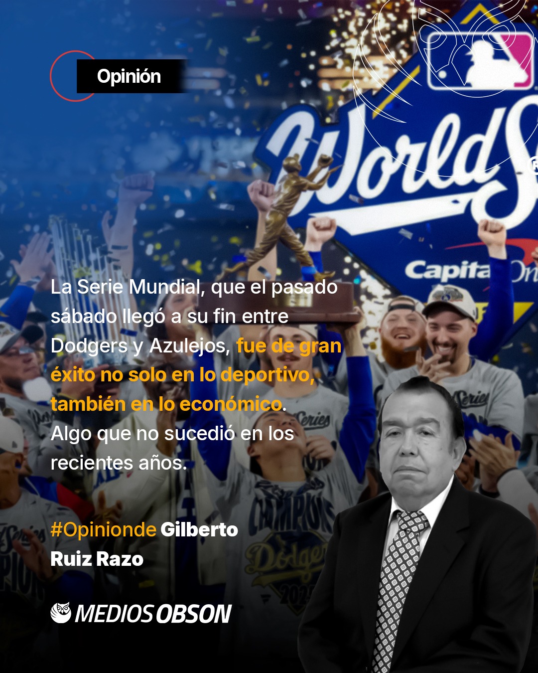 ÉXITO.- La Serie Mundial, que el pasado sábado llegó a su fin entre Dodgers y Azulejos, fue de gran éxito no solo en lo deportivo, también en lo económico. Algo que no sucedió en los recientes años. Vaya, ni siquiera la Serie Mundial soñada entre Yankees y Dodgers del 2024. Y eso que Dodgers superó en nómina 350 millones de dólares a Azulejos que la tuvieron en 255.
