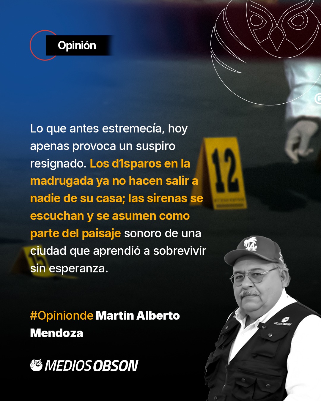 ENVUELTO POR LA COSTUMBRE VIVE EL MUNICIPIO; LO QUE ANTES ESTREMECÍA, HOY APENAS PROVOCA UN SUSPIRO RESIGNADO; LOS DISPAROS EN LA MADRUGADA YA NO HACEN SALIR A NADIE DE SU CASA; LAS SIRENAS SE ESCUCHAN Y SE ASUMEN COMO PARTE DEL PAISAJE SONORO DE UNA CIUDAD QUE APRENDIÓ A SOBREVIVIR SIN ESPERANZA; NADIE SE ASOMBRA PORQUE EL MIEDO YA NO GRITA: SE VOLVIÓ PARTE DEL AIRE; Y ESE SILENCIO, EL MÁS PELIGROSO DE TODOS, ES EL QUE MANTIENE VIVA LA IMPUNIDAD; EN CAJEME YA NO HAY SOBRESALTO, SOLO RUTINA EN LA TRAGEDIA; LA GENTE YA NO ESPERA JUSTICIA, SOLO QUE DÍA TERMINE SIN QUE EL NOMBRE DE UN CONOCIDO APAREZCA EN UNA LISTA MÁS; HOY LA JUSTICIA EN SONORA PARECE MEDIRSE EN LIKES; LA FISCALÍA ESTATAL ACTÚA SOLO CUANDO UN VIDEO SE VIRALIZA O UNA DENUNCIA SE VUELVE TENDENCIA; SI NO HAY RUIDO MEDIÁTICO, NO HAY INDAGACIÓN; ES LAMENTABLE QUE LA ACCIÓN INSTITUCIONAL DEPENDA DEL IMPACTO EN REDES Y NO DE LA GRAVEDAD DEL DELITO; AYER EN LA MAÑANA, EN LA COLONIA PRIMAVERA, SE DIO UN ATAQUE ARMADO Y LUEGO UN INCENDIO EN UNA VIVIENDA QUE ERA UTILIZADA COMO “TIRADERO” DE DROGAS; UN HOMBRE DE 68 AÑOS MURIÓ VÍCTIMA DE LOS IMPACTOS DE BALA QUE RECIBIÓ Y OTRO MÁS RESULTÓ LESIONADO; DE NUEVA CUENTA EMPIEZA A ESCALAR VERTIGINOSAMENTE CIFRA DE EJECUTADOS; MÉXICO PARECE CONDENADO A REPETIR SUS TRAGEDIAS; EL ASESINATO DEL ALCALDE CARLOS MANZO EN URUAPAN Y EL DEL ABOGADO Y EX PROCURADOR ABEL MURRIETA EN OBREGÓN, SON DOS HERIDAS ABIERTAS QUE REVELAN UNA VERDAD INCÓMODA: EN ESTE PAÍS, LA VALENTÍA SE PAGA CON LA VIDA Y LA JUSTICIA NO LLEGA; OTRA VEZ LA TRAGEDIA RECORDÓ QUE PROTECCIÓN CIVIL SIGUE OPERANDO MÁS COMO OFICINA DE PAPELEO QUE COMO SISTEMA DE PREVENCIÓN.