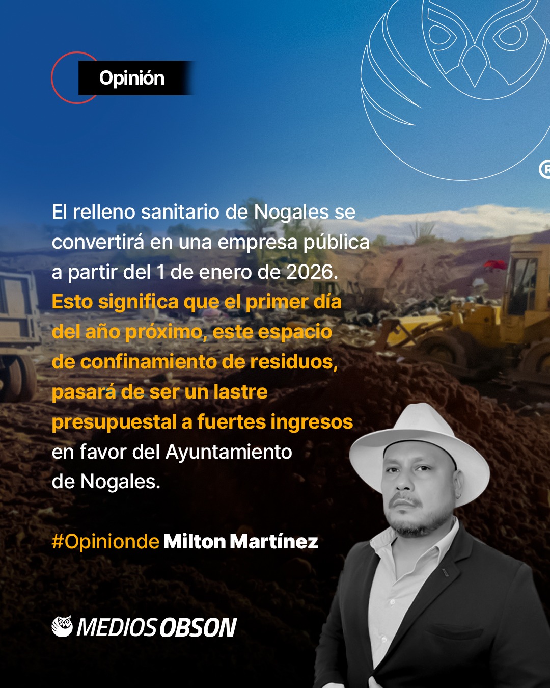 El relleno sanitario de Nogales se convertirá en una empresa pública a partir del 1 de enero de 2026. Esto significa que el primer día del año próximo, este espacio de confinamiento de residuos, pasará de ser un lastre presupuestal a fuertes ingresos en favor del Ayuntamiento de Nogales.