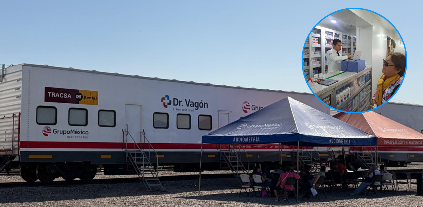 Con 18 vagones estacionados sobre la vía del ferrocarril en la colonia Plano Oriente, el Dr. Vagón de Grupo México, ofrece distintos servicios de salud a las y los cajemenses, en coordinación con DIF Municipal.