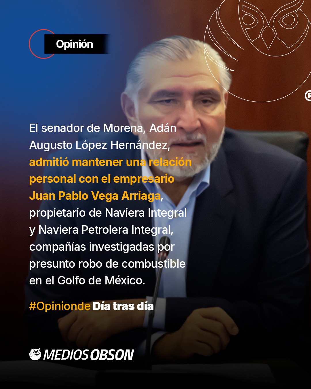 El senador de Morena y exsecretario de Gobernación, Adán Augusto López Hernández, admitió mantener una relación personal con el empresario tabasqueño Juan Pablo Vega Arriaga, propietario de Naviera Integral y Naviera Petrolera Integral, compañías investigadas por presunto robo de combustible en el Golfo de México. El reconocimiento se dio luego de una investigación de Latinus que reveló que ambas empresas recibieron créditos por 21 millones de dólares de Bancomext, pese a estar bajo indagatoria, y que han acumulado contratos con Pemex por más de 6 mil millones de pesos entre los gobiernos de Andrés Manuel López Obrador y Claudia Sheinbaum. López Hernández aseguró que conoce a Vega Arriaga “desde hace cinco o seis años” y defendió que se trata de un empresario con trayectoria en el sector naviero. Sin embargo, calificó el caso como parte de una “campaña mediática orquestada por la derecha” para desprestigiarlo y golpear a Morena rumbo a los procesos políticos de 2026. Pese a su explicación, la revelación ha generado críticas en la oposición, que exige aclarar los vínculos entre funcionarios y empresarios beneficiados por contratos públicos durante el actual sexenio.