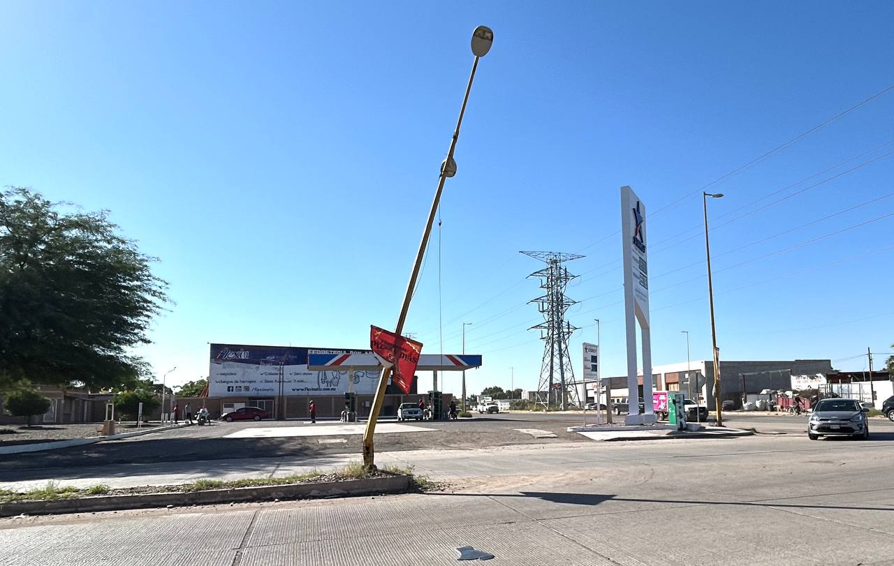 De caerse el poste, este se desplomaría hacia el carril sur de la calle No Reelección, representando peligro para la gente que se desplaza por tal vía de poniente a oriente.