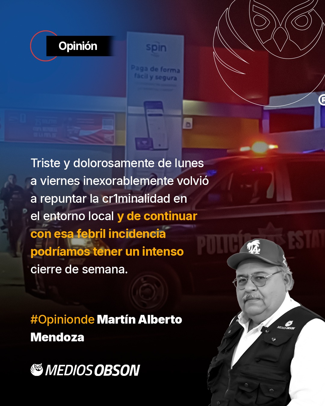 VOLVIÓ A REPUNTAR LA CRIMINALIDAD EN ENTORNO LOCAL INEXORABLEMENTE; DE SEGUIR LA FEBRIL INCIDENCIA PODRÍAMOS TENER INTENSO CIERRE DE SEMANA; DIEZ FALLECIDOS EN CINCO DÍAS, COMO SI LA MUERTE HUBIERA TOMADO TURNO FIJO EN LA CIUDAD QUE SE NOS DESANGRA MIENTRAS TODOS MIRAN HACIA OTRO LADO; Y A ESA CIFRA SUMAN OCHO PERSONAS MÁS QUE ESTÁN HOSPITALIZADAS, ALGUNOS DE ELLOS, DEBATIÉNDOSE ENTRE VIDA Y LA MUERTE, COMO CONSECUENCIA DE LAS HERIDAS DE BALA QUE SUFRIERON EN AGRESIONES ARMADAS; QUINCE HISTORIAS TRUNCADAS, QUINCE FAMILIAS ROTAS Y UN MUNICIPIO QUE PARECE HABER PERDIDO LA CAPACIDAD DE REACCIONAR; CUOTA O NO, ES IMPERDONABLE TANTA INEFICACIA DE PARTE DE LAS AUTORIDADES, LA FALTA DE ESTRATEGIA, LA AUSENCIA TOTAL DE PREVENCIÓN Y LA COMODIDAD DE SEGUIR CULPANDO SIEMPRE A ALGUIEN MÁS; LA AMIC, DISTA MUCHÍSIMO DE LA EFICACIA QUE PROMETEN EN DISCURSOS; TAMBIÉN HAY UNA VERDAD INCÓMODA QUE NADIE QUIERE DECIR; MUCHAS FAMILIAS SABEN QUE SUS HIJOS, HERMANOS O PAREJAS “NO ANDAN BIEN”, SABEN EN QUÉ ANDAN METIDOS, SABEN EN QUÉ PASOS ANDAN, Y AUN ASÍ GUARDAN SILENCIO; NO CORRIGEN, NO BUSCAN AYUDA, NO PONEN LÍMITES; SE CONVIERTE EN CADENA QUE NO ROMPE NADIE Y QUE ACABA COMO LO QUE ESTAMOS VIENDO: EN MORGUES, EN VELORIOS Y EN NOTAS QUE SE REPITEN DÍA TRAS DÍA; LA AUTORIDAD PUEDE PATRULLAR, PUEDE MONTAR OPERATIVOS, PUEDE SIMULAR PRESENCIA, PERO SI FAMILIAS NO ACTÚAN A TIEMPO, EL RESULTADO LO ESTAMOS VIENDO; A HOMICIDIOS HABRÍA QUE SUMARLE LAS DESAPARICIONES QUE ESTÁN LATENTES EN CAJEME; TAN SOLO EN LOS CATORCE DÍAS VIVIDOS DEL PERIODO EN CURSO HAN DESAPARECIDOS ALREDEDOR DE VEINTICINCO PERSONAS, ENTRE ESTAS, 5 MUJERES.