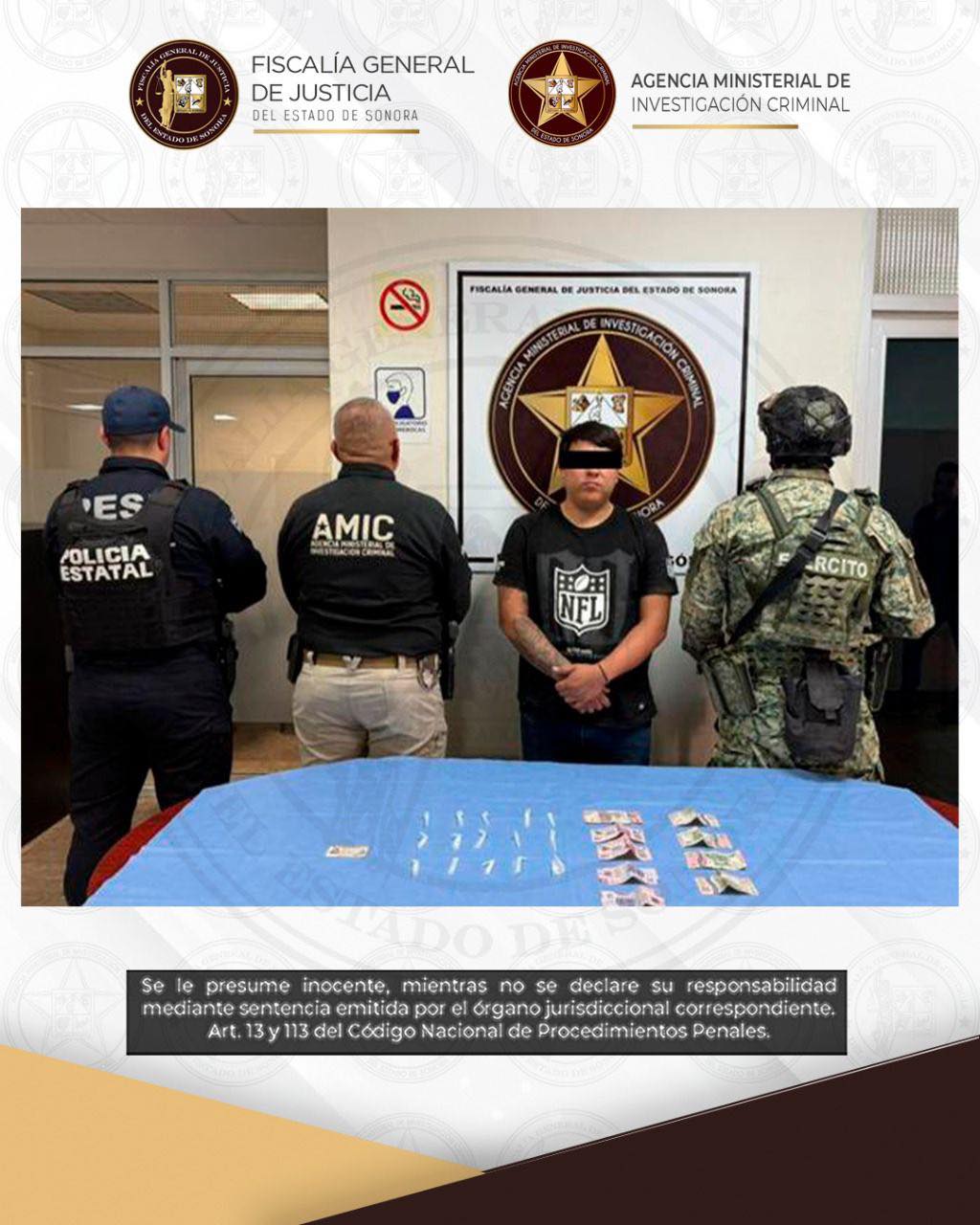 El detenido y los indicios asegurados quedaron a disposición del agente del Ministerio Público para las investigaciones correspondientes; la Fiscalía General de Justicia del Estado de Sonora deja así de manifiesto su responsabilidad inquebrantable de combatir el narcomenudeo y la delincuencia organizada en la región de Cajeme, en coordinación permanente con las fuerzas federales y estatales.