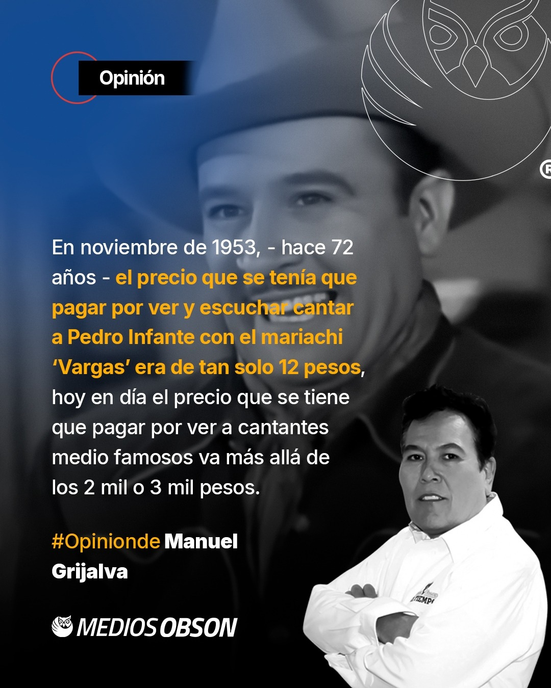 No todos los caminos son para todos los caminantes… Si aún no han ido a disfrutar y ha maravillarse con todas las sorpresas que organizadores de la ExpoFest Cajeme 2025 han preparado para sus visitantes, los invito a que lo hagan cuanto antes, pues en un abrir y cerrar de ojos esta feria estará llegando a su fin y es que pareciera que los días pasan volando, a pesar de que apenas el pasado viernes fue inaugurada, estamos ya por vivir el segundo fin de semana de esta verbena de corte popular… para quienes mañana jueves 20 de noviembre quieren darse una vueltecita por allá y apenas tienen para lo indispensable, les recuerdo que el precio del boleto de entrada para mujeres está al 2X1, es decir, pagando 1 entran 2, todo con tal de que se la pasen muy a gusto y disfruten unas horas muy agradables en un ambiente ciento por ciento familiar… No olviden que este viernes 21 de noviembre será cuando María León y Yahir ofrezcan su concierto totalmente gratuito en el ‘Auditorio de las Estrellas’, lo mismo hará ‘Matisse’ el domingo 23, ¡así que ya lo saben!… La verdadera grandeza consiste en hacer que todos se sientan grandes… Un pequeño ‘mitotito’ se ha armado en redes sociales tan solo porque un presentador, animador o maestro de ceremonias dejo de prestar sus servicios a una agrupación musical, no entiendo porque tanto escándalo y es que no es el fin del mundo, hay que recordar que cuando una puerta se cierra otra se abre, dicen también que ‘el que es perico en cualquier lugar es verde’, entonces no hay que preocuparse tanto por quien ha quedado desempleado… a los que reconozco por su desempeño sobre el escenario son a Jorge ‘Golden’ Sánchez y Javier ‘El profe’ Mora, ellos si saben muy bien su oficio y es que siempre le dan su lugar a la agrupación a la que pertenecen, nunca interrumpen a los cantantes y siempre envían saludos y complacencias a sus seguidores, nunca andan con protagonismos ni queriendo robar cámara… los que salieron del grupo ‘Laberinto’ sin decir adiós y nunca nadie dijo nada son Miguel ‘Mike’ Muñoz, (que en paz descanse) Rolando López Torres y Wilfrido ‘Willy’ Lara, en aquel entonces ninguno se despidió de sus seguidores, simplemente dejaron de ser y estar, nadie los cuestionó, todo porque en ese entonces las redes sociales no eran lo que hoy en día son, ahora todo se presta para hacer un escándalo y para engrandecer a quienes no lo merecen, también porque los ex ‘laberintos’ tenían muy bien definidos lo que harían con sus vidas futuras… No puedes aprender a nadar con tiburones si te ahogas en un vaso de agua… En noviembre de 1953, – hace 72 años – el precio que se tenía que pagar por ver y escuchar cantar a Pedro Infante con el mariachi ‘Vargas’ era de tan solo 12 pesos, hoy en día el precio que se tiene que pagar por ver a cantantes medio famosos va más allá de los 2 mil o 3 mil pesos, ahora que si no se tiene tanto dinero, lo mínimo que se tiene que pagar por verlos de lejos son al menos 500 pesos… Hay gente tan pobre, que solo tiene dinero… Julión Álvarez, grupo ‘Firme’, Gerardo Ortiz, Daddy Yankee y Cazzu son solo algunos de los muchos cantantes que este año no pudieron hacerse presentes en la entrega del Latin Grammy por problemas con sus Visas, para muchos de ellos lo mejor fue no viajar, así pudieron disfrutar de esta premiación en la comodidad de sus hogares, ¡más y mejores premios vendrán!… Seamos sabios como el silencio, fuertes como el viento y útiles como la luz… Etcétera…