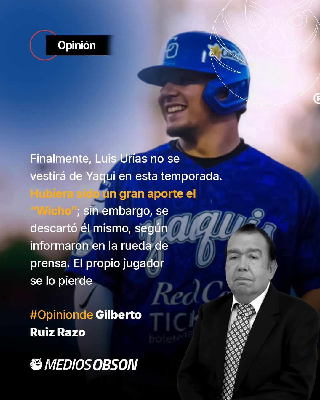 NI HABLAR.- Finalmente Luis Urías no se vestirá de Yaqui en esta temporada. Hubiera sido un gran aporte el “Wicho”; sin embargo, se descartó él mismo, según informaron en la rueda de prensa. El propio jugador se lo  pierde.