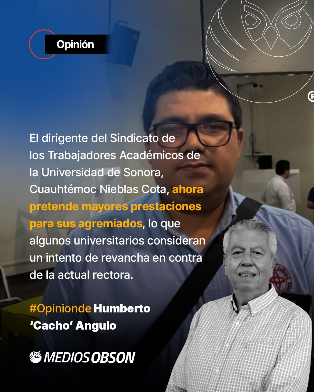 El dirigente del Sindicato de los Trabajadores Académicos de la Universidad de Sonora, esto es el STAUS, CUAUHTÉMOC NIEBLAS COTA quien contendió por la Rectoría en el pasado proceso, en contra de Dena Camarena, ahora pretende mayores prestaciones para sus agremiados, lo que algunos universitarios consideran un intento de revancha en contra de la actual rectora…