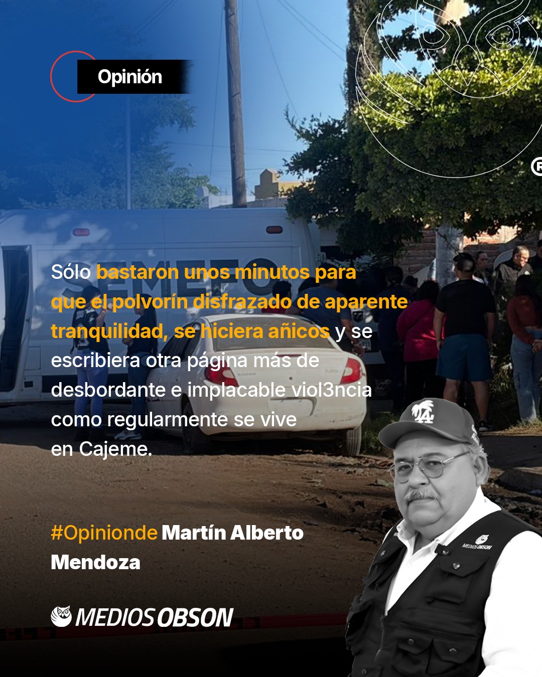 EN CUESTIÓN DE MINUTOS SE HIZO AÑICOS APARENTE QUIETUD DE CAJEME; PRIMERO HALLAN CADÁVER DE JOVEN MADRE DESAPARECIDA EN LAS HACIENDAS; CASI UNA HORA MÁS TARDE UN GRUPO ARMADO SE LLEVA A LA FUERZA A UNIVERSITARIO Y AGENTE POLICÍACO EN LA TEPEYAC Y SE ACABA TRANQUILIDAD; ANGÉLICA LOURDES DEJA EN ORFANDAD A PEQUEÑA CRIATURA QUE CRECERÁ EN MEDIO DE UN VACÍO QUE NO DEBIÓ EXISTIR, OTRO GOLPE QUE EXHIBE LA AUSENCIA TOTAL DEL ESTADO; HERMANA DEL ESTUDIANTE Y EN TRANSMISIÓN EN VIVO PIDIÓ CLEMENCIA POR LA VIDA DE SU HERMANO; SU SÚPLICA ROMPIÓ EL SILENCIO DE MUCHOS, PERO NO ALCANZÓ A MOVER EL CORAZÓN INSTITUCIONAL DE LOS ENCARGADOS DE PROCURACIÓN DE JUSTICIA, QUIENES NUEVAMENTE INTENTAN DISFRAZAR UNA REALIDAD QUE YA NO ADMITE MAQUILLAJE; EL CASO DE RAYMUNDO, MUESTRA LA VULNERABILIDAD EXTREMA EN LA QUE VIVE CAJEME; HASTA AYER EN LA MAÑANA RAYMUNDO SEGUÍA DESAPARECIDO; NO HAY AVANCE, NO HAY SEÑAL, NO HAY RESPUESTA. SU HERMANA SIGUE IMPLORANDO QUE LO BUSQUEN, MIENTRAS LA AUTORIDAD SIGUE INMÓVIL, SORDA, DISTRAÍDA; ¿QUÉ PUEDE ESPERAR UN UNIVERSITARIO SI NI SIQUIERA LAS PATRULLAS PARECEN ENTERARSE DE LO QUE OCURRE EN SU PROPIA COLONIA?; EN INTENSO DESPLIEGUE POR AIRE Y TIERRA DE LA POLICÍA ESTATAL DE SEGURIDAD PÚBLICA (PESP), OPERATIVO RESCATÓ SANO Y SALVO AL AGENTE POLICÍACO; HAY QUE DECIR QUE EL VEHÍCULO DONDE LO LLEVABAN QUEDÓ EMBANCADO Y ESTO FAVORECIÓ A LA JUSTICIA; UNA SUERTE QUE NUNCA BENEFICIA A LOS INOCENTES QUE SIGUEN DESAPARECIDOS O ASESINADOS; SIN DUDA LO QUE MÁS DUELE ES COMPARAR ESTE PRESENTE CON LOS TIEMPOS EN QUE SÍ HABÍA MANDO, CARÁCTER Y ESTRATEGIA; AQUÍ NO FALTAN RECURSOS; SINO VOLUNTAD, MANDOS Y AUTORIDAD REAL; Y MIENTRAS NO LLEGUE, CAJEME SEGUIRÁ LLORANDO A HIJOS MIENTRAS LA VIOLENCIA AVANZA SIN FRENO; ESTO, ANTE INEPTITUD Y NEGLIGENCIA DE ENCARGADOS DE LA SEGURIDAD