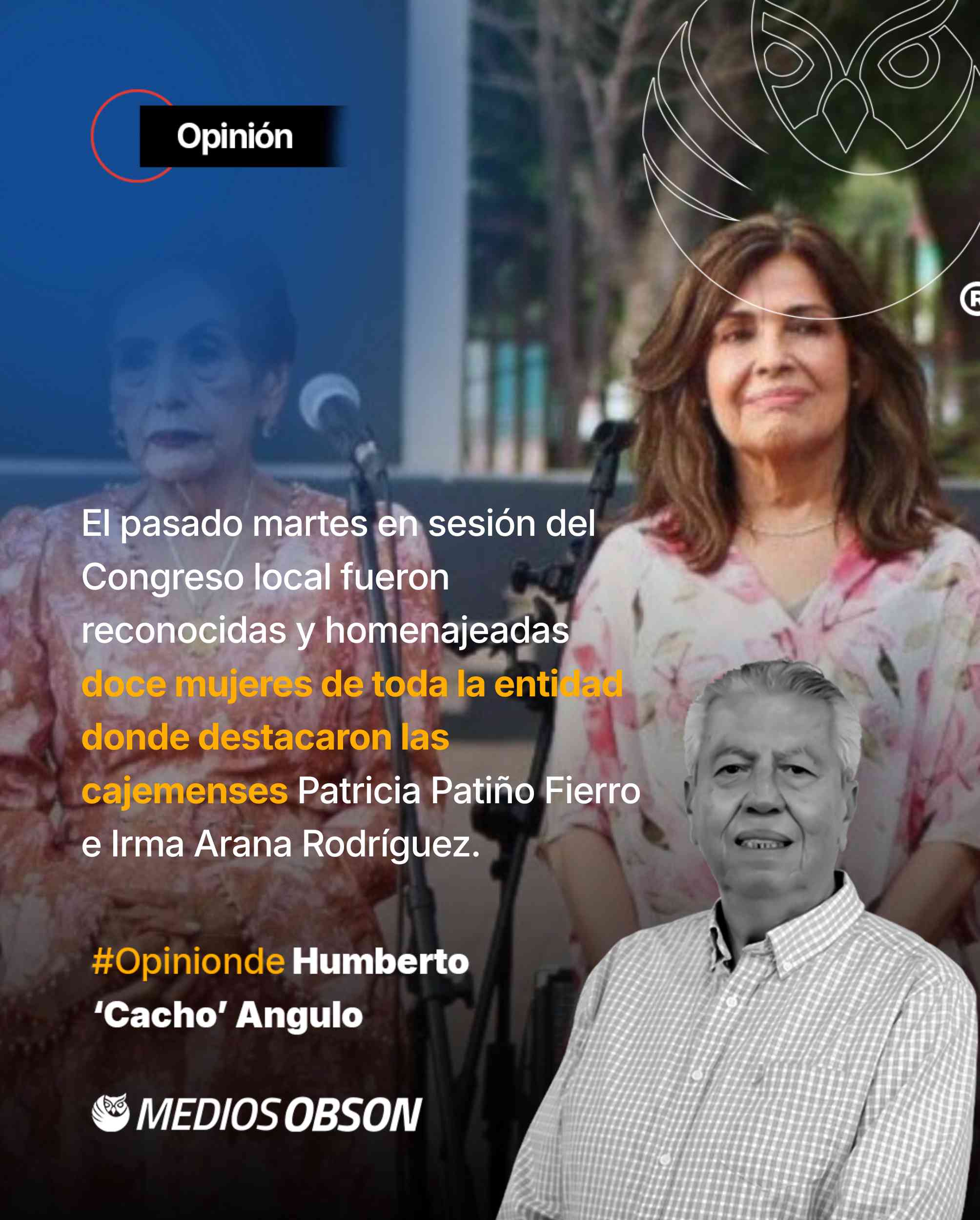 El pasado martes en sesión del congreso local fueron reconocidas y homenajeadas doce mujeres de toda la entidad donde destacaron las cajemenses PATRICIA PATIÑO FIERRO, actual rectora de una reconocida universidad estatal y presidenta del DIF-Cajeme por ser la esposa del alcalde de este municipio JAVIER LAMARQUE CANO, otra de las damas cajemenses homenajeadas fue la poetisa con alma rural, como la bautizara mi gran amigo y colega columnista MARIO RIVAS HERNÁNDEZ, a la señora IRMA ARANA RODRÍGUEZ. El galardón a la señora PATRICIA fue por la función pública, mientras que, a IRMA, por su paso por la cultura. Aquí nos sorprendió que el premio a la mujer empresaria se declarara desierta pues las propuestas al parecer eran dos mujeres no simpatizantes con la Cuatro T, y como la mayoría de los legisladores locales sonorenses hacen la mayoría, optaron por dejarla vacante.