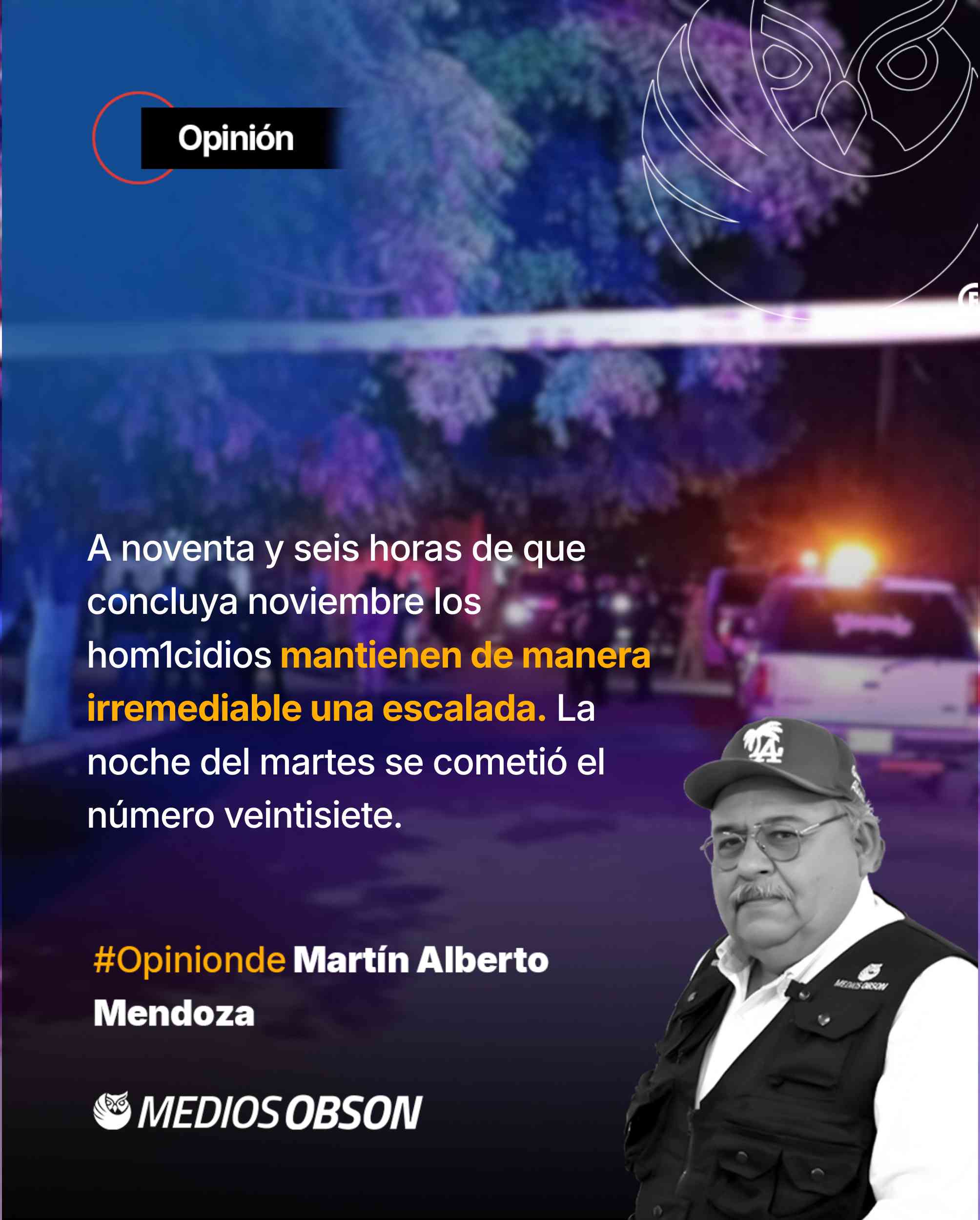 A NOVENTA seis horas de que concluya noviembre los homicidios mantienen de manera irremediable una escalada. La noche del martes se cometió el número veintisiete. Fue ultimado Jesús Gabriel, por desconocidos que lo sorprendieron en la sala de la casa que habitaba, en la colonia Nueva Galicia. De esta forma, se destruyó otra vida, al margen de las circunstancias que hayan dado motivo a este nuevo crimen…MUCHO SE ha insistido en que la ausencia de investigaciones reales por parte de la Fiscalía es ya un escándalo público. No se trata solo de omisiones, sino de una incapacidad estructural que se refleja en cada caso sin resolver, en cada carpeta mal integrada y en cada familia que termina sabiendo más de la muerte o desaparición de su ser querido que los propios agentes ministeriales. La institución dirigida por Gustavo Salas Chávez se ha convertido en un memorial de excusas: investigaciones que no avanzan, peritajes tardíos, líneas de trabajo que se abren, pero nunca se siguen, entrevistas improvisadas y una carencia brutal de métodos. Es indignante ver cómo una institución completa puede permanecer paralizada mientras la violencia arrasa con jóvenes, mujeres y hasta policías sin que nadie en ese edificio blindado sea capaz de articular una investigación sólida. Para nadie es un secreto que en Cajeme ya no hay persecución de responsables; hay papeleo. Ya no hay criminalística; hay simulación. Lo único que se ve trabajar ahí son las impresoras, porque los agentes, los peritos y los mandos parecen haber renunciado a la misión más básica que tienen: investigar. No existe seguimiento puntual, no existen avances públicos, y, lo más grave, no existe voluntad. La Fiscalía ha perfeccionado el arte de poner pretextos, mientras perfecciona también su indiferencia ante cada asesinato y desaparición…AHÍ TENEMOS el caso del contralmirante Claudio Cruz Hernández que es el rostro y la muestra más evidente de la desconexión que existe entre los mandos y la realidad. Su nombre aparece en actos públicos, reuniones, entrevistas, pero no en operativos. Su presencia se nota en fotos institucionales, no en colonias afectadas por la violencia. Es más, ni en el lugar de los hechos donde fue privado de la libertad uno de sus subalternos. Fue a verlo cuando estaba ante el Ministerio Público. Tal parece estar más interesado en política, en mantenerse vigente en eventos y en posar frente a cámaras que en liderar verdaderamente una corporación que agoniza. Porque quien dirige la seguridad de Cajeme no puede darse el lujo de tener el uniforme impecable todos los días, sin una mancha de polvo, sin una gota de sudor, sin una huella de calle. Ese tipo de pulcritud solo la tiene quien no opera, quien no entra a campo, quien no camina, quien no persigue, quien no está donde la gente muere. El municipio necesita mandos que ensucien las botas. Necesita líderes que estén en la escena del crimen antes que los reporteros, no que lleguen después únicamente para salir en la foto. Necesita estrategia, no discursos. Necesita acción, no poses espurias como decía don Jesús Estrada Medina (QEPD) y quien lo recuerda con claridad es ahora el ex Amic, abogado y catedrático, Alejandro Valle Jaramillo, quien por mucho tiempo fue segundo de a bordo del incorruptible excomandante. Pero hoy queda claro: tanto la Fiscalía como el mando estatal prefieren replicar un guión político antes que enfrentar la calle que arde bajo sus narices. Y esa simulación, esa comodidad desde las oficinas frías, esa distancia del territorio, es lo que tiene hoy a Ciudad Obregón de rodillas ante el crimen. Cajeme necesita despertar, porque hoy fueron ellos, pero mañana puede ser cualquiera. Nadie está exento, nadie tiene garantizado regresar a casa, nadie puede decir con certeza que la violencia no tocará su puerta. Hoy los nombres son Angélica Lourdes y Raymundo, así como, José Gilberto el policía que intentó ayudarlo; mañana puede ser un vecino, un amigo, un hermano, un hijo. La violencia no distingue profesiones, edades ni colonias. La única línea que separa a un ciudadano de convertirse en víctima es que no le haya tocado todavía. Es urgente entender que lo que ocurre no es una cifra aislada ni un caso más para el archivo; es una advertencia. Cuando la autoridad deja de investigar, cuando los mandos prefieren salir limpios en las fotos antes que ensuciar las botas en el terreno, cuando la Fiscalía convierte cada tragedia en trámite y cada carpeta en un estorbo, la vida de todos queda expuesta. Nadie puede sentirse seguro en una ciudad donde los responsables caminan libres y las víctimas terminan olvidadas en un expediente incompleto…PARA MUCHOS la indiferencia institucional no es solo un problema administrativo, es una sentencia silenciosa que cae sobre toda la comunidad y esto debe quedarle muy claro al delegado regional de la FGJE, Ricardo Revilla Celaya, porque si la Fiscalía no actúa hoy por ellos, tampoco actuará mañana por usted, por mí, por cualquiera de nuestros hijos. La seguridad dejó de ser un derecho y se convirtió en una lotería cruel donde gana únicamente quien tiene suerte. Cajeme no puede continuar aceptando esto como destino. Transformar esta realidad no es un acto de valentía: es un acto de supervivencia. Aquí, hoy más que nunca, la tragedia de unos debe ser la alarma de todos. Porque mañana, Dios no lo quiera, podría ser nuestra familia a la que le toque suplicar por justicia. Ser padre en estos tiempos es una tarea que exige más firmeza, más presencia y más responsabilidad que nunca. La realidad que vive Cajeme obliga a reflexionar profundamente sobre lo que permitimos, lo que ignoramos y lo que dejamos pasar. Muchos jóvenes están creciendo sin límites, sin guía y sin la supervisión que antes se consideraba básica. Hoy los vemos salir sin saber con quién se juntan, qué lugares frecuentan o qué decisiones están tomando a espaldas de su