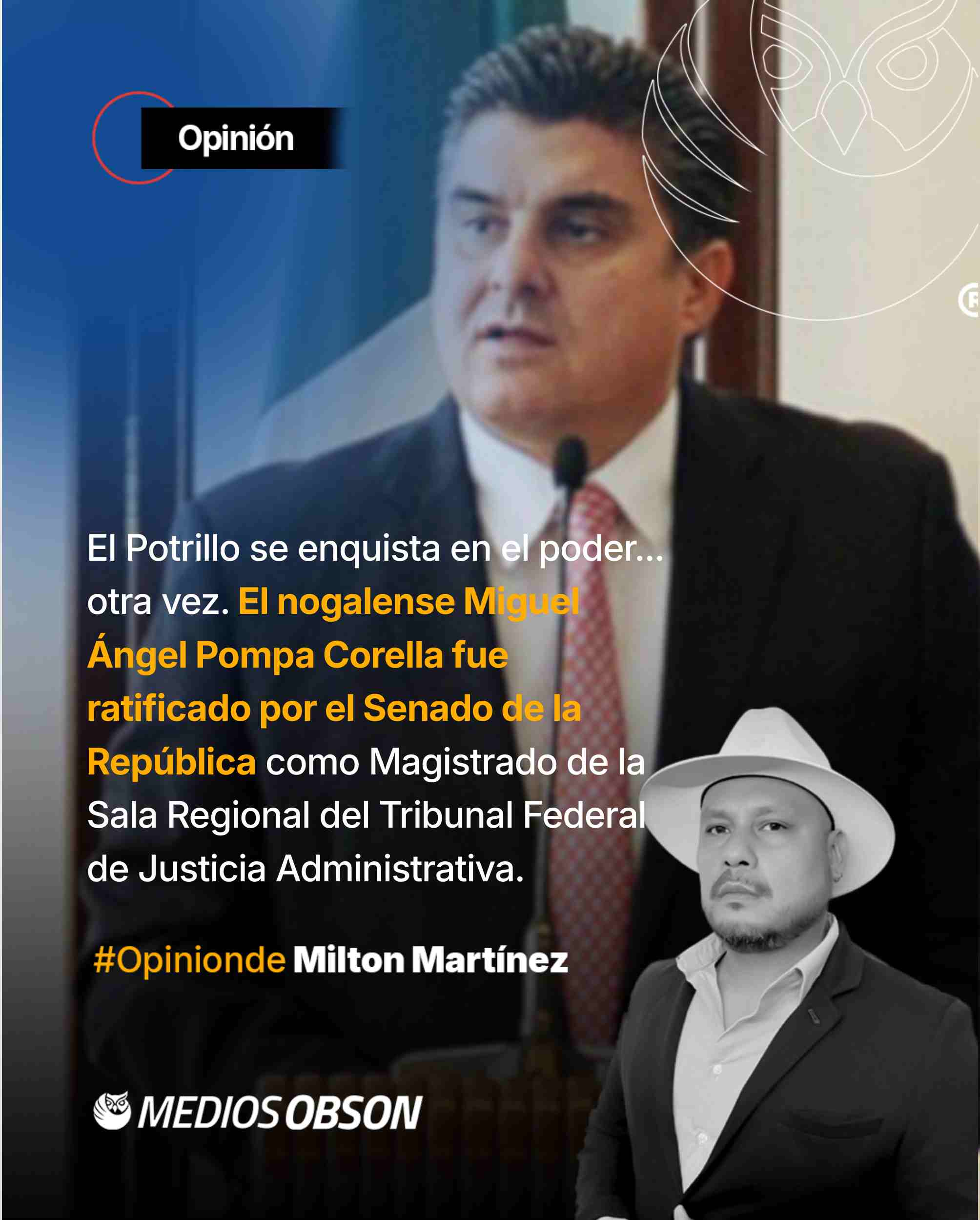 El nogalense Miguel Ángel Pompa Corella fue ratificado por el Senado de la República como Magistrado de la Sala Regional del Tribunal Federal de Justicia Administrativa (TFJA).