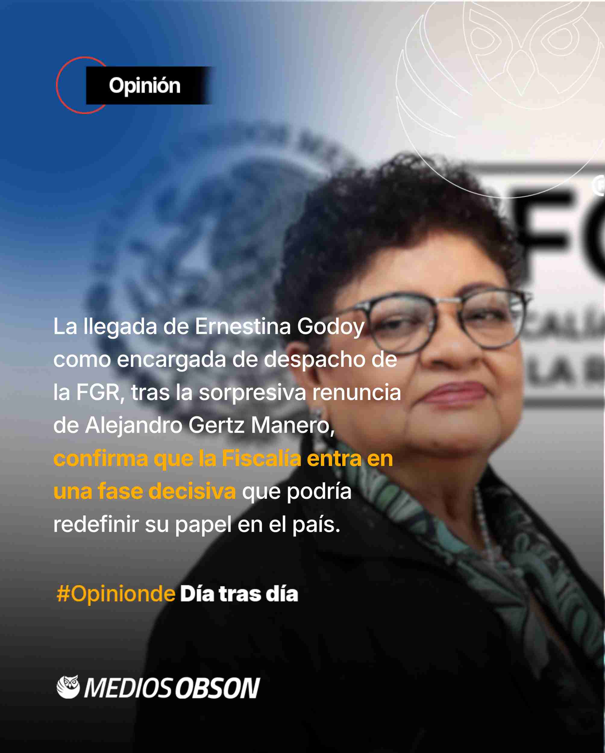 La llegada de Ernestina Godoy como encargada de despacho de la FGR, tras la sorpresiva renuncia de Alejandro Gertz Manero, confirma que la Fiscalía entra en una fase decisiva que podría redefinir su papel en el país. Godoy Ramos anunció su nombramiento con un mensaje de compromiso —“serviré con firmeza y justicia”—, una frase que intenta transmitir estabilidad en medio del desconcierto generado por la abrupta salida de Gertz, quien dejó su cargo casi dos años antes de concluir su mandato constitucional y mientras se difundía la versión de que será enviado como embajador a “un país amigo”. Aunque la funcionaria asume la responsabilidad bajo el artículo 21 de la Ley de la Fiscalía General de la República, su arribo ocurre en un momento en el que la institución enfrenta cuestionamientos por su eficacia, su independencia y el manejo de investigaciones de alto impacto. El reto de Godoy será navegar entre la presión política, el escrutinio público y la expectativa de que la Fiscalía recupere credibilidad. La transición no debe ser solo administrativa: es una oportunidad para revisar prácticas, fortalecer procesos y demostrar que la justicia no puede depender de coyunturas ni relevos precipitados, sino de un servicio profesional verdaderamente autónomo.
