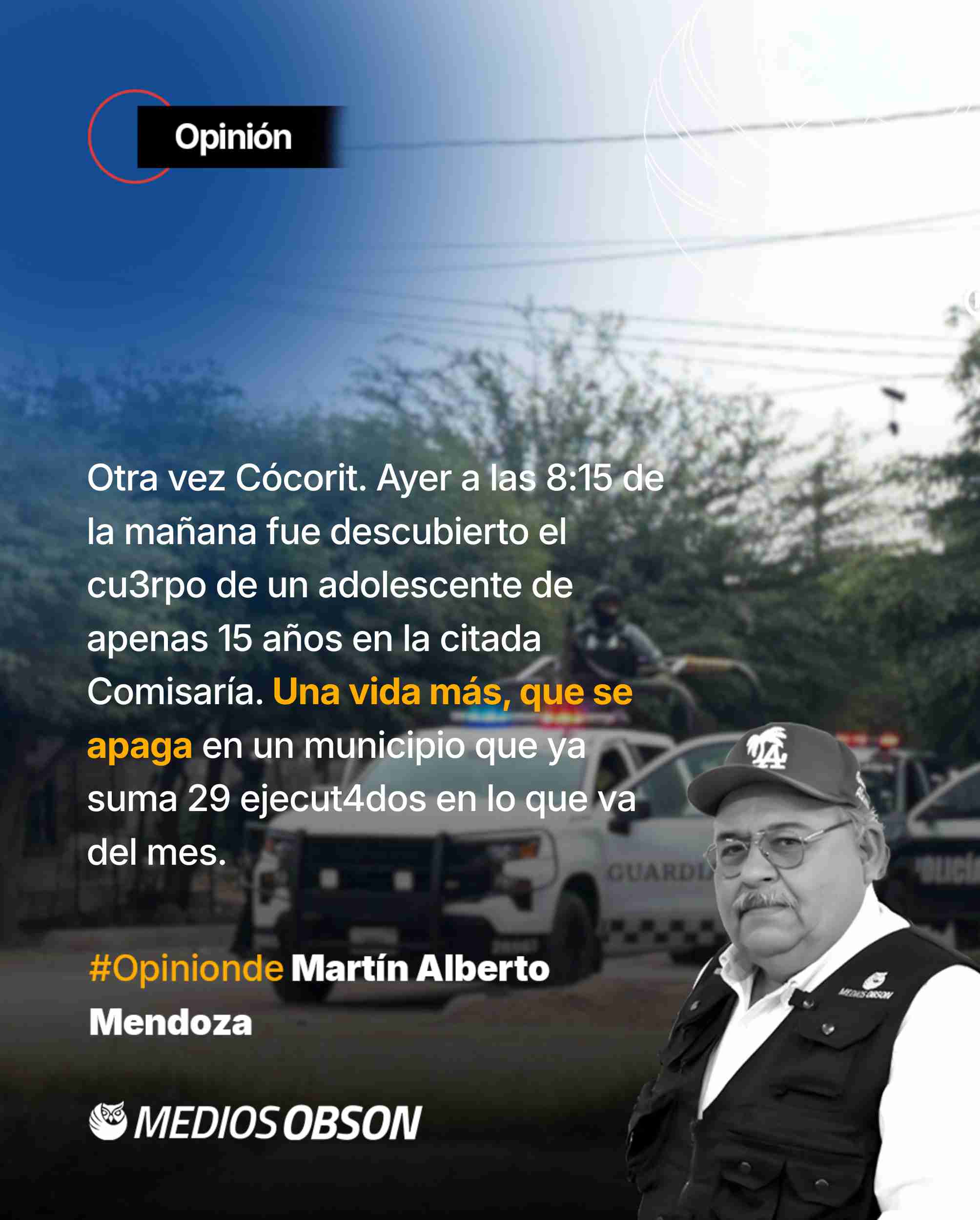 DAN MUERTE A OTRO ADOLESCENTE AYER EN LA MAÑANA EN CÓCORIT; UNA VIDA MÁS, QUE SE APAGA DE MANERA BRUTAL EN UN MUNICIPIO QUE YA SUMA 29 EJECUTADOS EN LO QUE VA DEL MES; ESTE HECHO MARCA EL CUARTO HOMICIDIO REGISTRADO DURANTE EL MISMO PERIODO, EN EL LLAMADO “PUEBLO MÁGICO”; LA NORMALIZACIÓN DE VIOLENCIA ESTÁ ALCANZANDO NIVELES QUE NINGUNA AUTORIDAD DEBERÍA PERMITIR; MIENTRAS LAS FAMILIAS VIVEN CON MIEDO, LAS AUTORIDADES MUNICIPALES SIGUEN MOSTRANDO UN DESEMPEÑO TIBIO Y SIN CAPACIDAD DE RESPUESTA; AUSENCIA DE ESTRATEGIA, DE PRESENCIA OPERATIVA Y DE MANDO REAL SE REFLEJA EN CADA CRIMEN QUE QUEDA IMPUNE Y EN CADA JOVEN QUE TERMINA SIENDO VÍCTIMA DE UN TERRITORIO QUE PARECE ESTAR QUEDANDO A MERCED DEL CRIMEN; COMUNIDAD DEL OTRORA Y APACIBLE PUEBLO VUELVE A SER ESCENARIO DE DOLOR, DE IMPOTENCIA Y DE UN RECLAMO QUE YA NO PUEDE ESCONDERSE: LA AUTORIDAD MUNICIPAL NO ESTÁ CUMPLIENDO CON SU DEBER; EL CASO DE LA MENOR YAEPSI EN VILLA BONITA PROVOCA REPUDIO; UNA VIDA MÁS TRUNCADA DE MANERA BRUTAL Y EVITABLE; OTRAS DOS MENORES, DE 13 Y 15 AÑOS, SOBREVIVIERON, PERO QUEDARON MARCADAS POR UN HECHO QUE JAMÁS DEBIÓ OCURRIR; MIENTRAS AUTORIDADES INVESTIGAN LA AGRESIÓN, TAMBIÉN SURGE UNA PREGUNTA INCÓMODA PERO NECESARIA: ¿QUÉ HACÍAN TRES ADOLESCENTES EN LA CALLE A ESAS HORAS DE LA MADRUGADA, SIN SUPERVISIÓN ADULTA Y EXPUESTAS A RIESGOS QUE TODOS CONOCEMOS EN UNA CIUDAD COMO ESTA?; DEBEN INSTANCIAS ASUMIR SU RESPONSABILIDAD EN ESCLARECIMIENTO DEL ATAQUE, PERO TAMBIÉN PADRES DEBEN RECONOCER LA PARTE QUE LES CORRESPONDE, PORQUE SEGURIDAD EMPIEZA EN CASA: CON LÍMITES CLAROS, CON PRESENCIA, CON REGLAS FIRMES QUE MUCHAS VECES SALVAN VIDAS; LO OCURRIDO EN VILLA BONITA REFLEJA NO SOLO VIOLENCIA QUE GOLPEA A LA CIUDAD, SINO TAMBIÉN LA AUSENCIA DE CONTROL FAMILIAR Y LA FALTA DE PREVENCIÓN INSTITUCIONAL