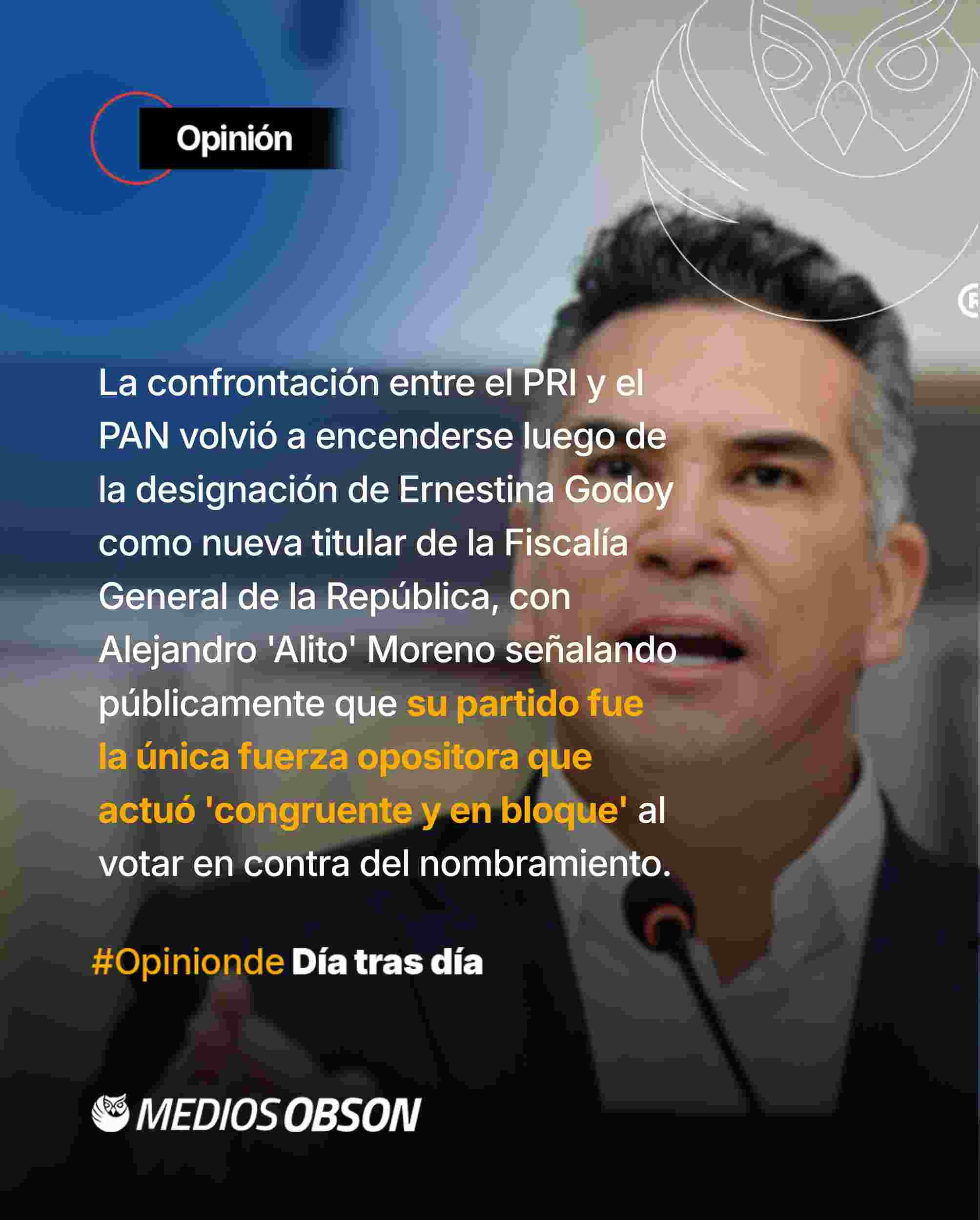 La confrontación entre el PRI y el PAN volvió a encenderse luego de la designación de Ernestina Godoy como nueva titular de la Fiscalía General de la República, con Alejandro ‘Alito’ Moreno señalando públicamente que su partido fue la única fuerza opositora que actuó ‘congruente y en bloque’ al votar en contra del nombramiento. Mientras Jorge Romero aseguró que el PAN no apoyó la designación, Moreno sostuvo que la votación en el Senado dejó clara la división interna del blanquiazul, pues tres panistas votaron a favor y once emitieron votos nulos, lo que contrastó con la postura unificada del PRI. El dirigente tricolor subrayó que los ciudadanos ‘deben saber quién miente y quién se mantiene como verdadero opositor’, insistiendo en que Movimiento Ciudadano aportó seis votos a favor y que, con los 87 del bloque oficialista, Morena no necesitaba apoyo adicional para asegurar las dos terceras partes requeridas. En un momento político donde las alianzas opositoras enfrentan tensiones internas, el mensaje de ‘Alito’ parece más un intento por reposicionar al PRI como fuerza relevante que un análisis de fondo sobre la Fiscalía, pero refleja el reacomodo de fuerzas en un escenario donde cada voto cuenta y cada narrativa pesa rumbo a los próximos procesos electorales.