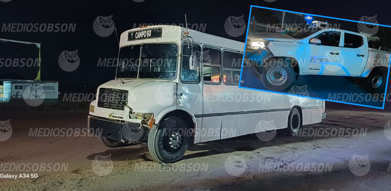 Ante la falta de precaución de un conductor, un camión suburbano que cubre la ruta Campo 60-Obregon, chocó contra un pick up al cortarle circulación.