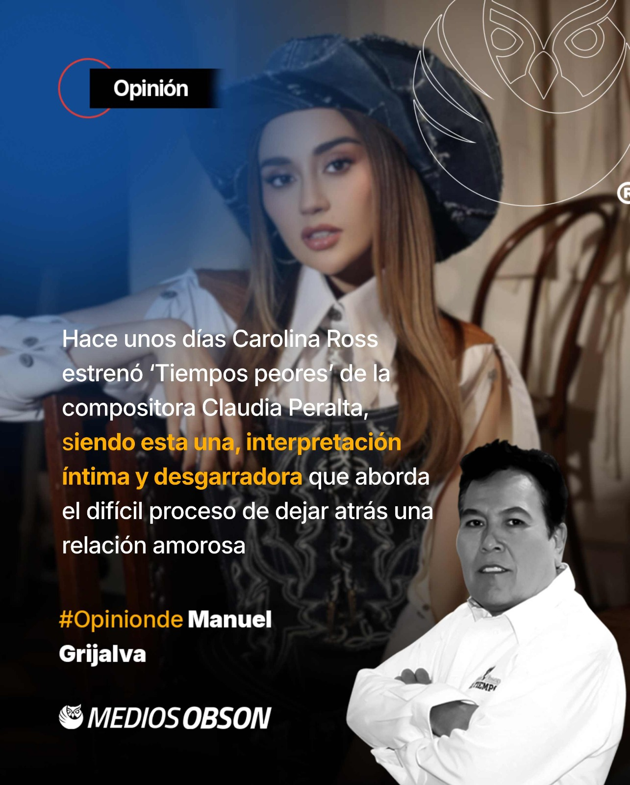 Ningún precio es demasiado alto por el privilegio de ser uno mismo… Si los boletos para la ‘CuraFest’ que Carin León ha organizado para el 14 y 15 de marzo se me hicieron muy caros, menos compraré para el mundial y es que para el encuentro entre Sudáfrica y México la reventa de buenos lugares ronda hasta en ochocientos mil pesos, ¿quién los irá a comprar?, no dudo que haya quien sí se anime a quedarse sin comer todo el 2026… los boletos más baratos, que son los de arriba, ¡‘arribotota’!, o séase, en lo más alto del estadio ‘Banorte’, tienen un valor de cincuenta y dos mil pesos, convirtiendo este encuentro en uno de los eventos deportivos con reventa más cara previos al mundial 2026… Lo bueno y barato no caben en un zapato… En Obregón los dos desfiles navideños más importantes de la ciudad ya son historia, pues estos maravillaron a los cajemenses el pasado sábado 6 de diciembre, ahora los invito a que el próximo domingo 14 de diciembre nos demos una vueltecita por la comisaria de la Marte R Gómez para que podamos disfrutar del desfile navideño que habitantes de aquel lugar han organizado, evento que dará inicio en la calle 8 en punto de las 5 de la tarde, a este desfile se vale asistir con el carros decorados acorde a la temporada que nos encontramos viviendo… Veinte años más tarde estarás más decepcionado por las cosas que no hiciste que por las que hiciste… Fue en 1984 cuando Yuri estrenó ‘Tiempos mejores’, canción con la que en ese mismo año ganó el Festival OTI Nacional, tema que se convirtió en un gran éxito y en un himno para México tras el terremoto de 1985, consolidando su carrera y la popularidad de la historia escrita por Sergio Andrade… hace unos días Carolina Ross estrenó ‘Tiempos peores’ de la compositora Claudia Peralta, siendo esta una interpretación íntima y desgarradora que aborda el difícil proceso de dejar atrás una relación amorosa… esta nueva entrega en formato a capella representa para la cantante sinaloense una despedida que expone el miedo y la incertidumbre que surgen al soltar un amor que marcó profundamente… los invito a escuchar ‘Tiempos mejores’ y también ‘Tiempos peores’, si puede me dejan dicho que tal les pareció el nuevo sencillo promocional de la primera eliminada del reality show ‘La Granja VIP’ de TV Azteca… ya que andamos en estas, déjenme y les digo que el actor y cantante de 27 años de nombre Sergio Mayer Morí ha sido nombrado como el nuevo rostro más bello de México, superando con dicho título a Aldo de Nigris y Aaron Mercury en ‘La Granja VIP’, ¿ustedes creen que se lo merezca?, ¿será que su papá, el ex ‘Garibaldi’ Sergio Mayer ha decidido a seguir el ejemplo de Pepeyonce y ha empezado a comprarle reconocimientos a su primer y único hijo varón?… Lo bonito del sarcasmo es que los inteligentes entienden y los tontos se ofenden… Para ustedes, ¿quién es mucho mejor cantante?, ¿Alfredo Olivas, Carin León, Julión Álvarez, Edén Muñoz o Peso Pluma?, quizá elegir a uno de ellos les resulte difícil, lo que les puedo asegurar es que el primero y el último de este listado jamás podrán presentarse en nuestra ciudad… Las acciones hablan más que las palabras… Etcétera…