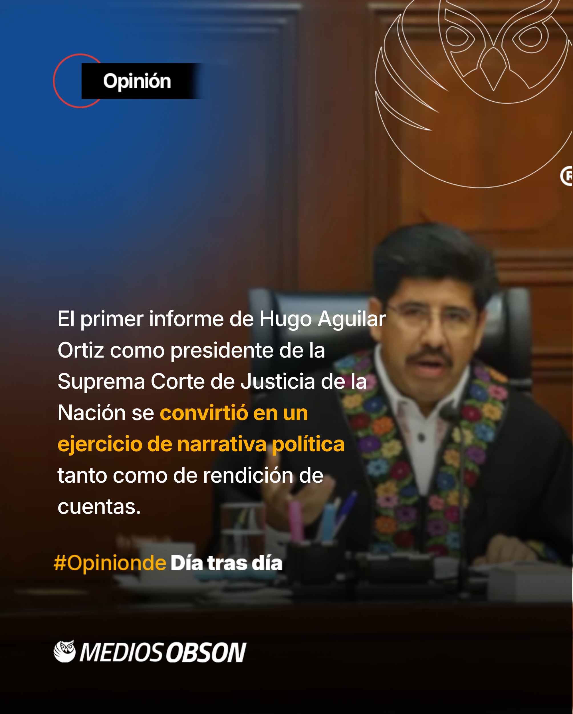 El primer informe de Hugo Aguilar Ortiz como presidente de la Suprema Corte de Justicia de la Nación se convirtió en un ejercicio de narrativa política tanto como de rendición de cuentas. Aguilar subrayó una y otra vez la independencia judicial, asegurando que la Corte ‘no se subordina’ a ningún poder y que su única lealtad es a la Constitución y al pueblo. El mensaje llega en un momento delicado: el Poder Judicial atraviesa una crisis derivada de los errores de nuevos jueces surgidos de la reforma constitucional y de los adeudos a impartidores retirados, mientras la presión política sobre la Corte sigue siendo evidente. Aguilar intenta marcar distancia al afirmar que su gestión rompe con una Corte tecnificada y distante para transformarla en una institución ‘abierta al pueblo’, con nuevos símbolos, interpretación en lenguas indígenas y sesiones completamente públicas. El anuncio de que no requerirá los 661 millones de pesos adicionales solicitados por la administración anterior refuerza la apuesta por la austeridad, pero también plantea dudas sobre si el recorte afectará la operación interna. Su discurso combina firmeza institucional con guiños al proyecto político dominante: independencia, sí, pero acompañada de un tono afín a la narrativa de la 4T. En suma, Aguilar busca reposicionar al máximo tribunal en medio de cuestionamientos y expectativas, tratando de convencer de que la renovación de la Corte es profunda, real y no solo cosmética.