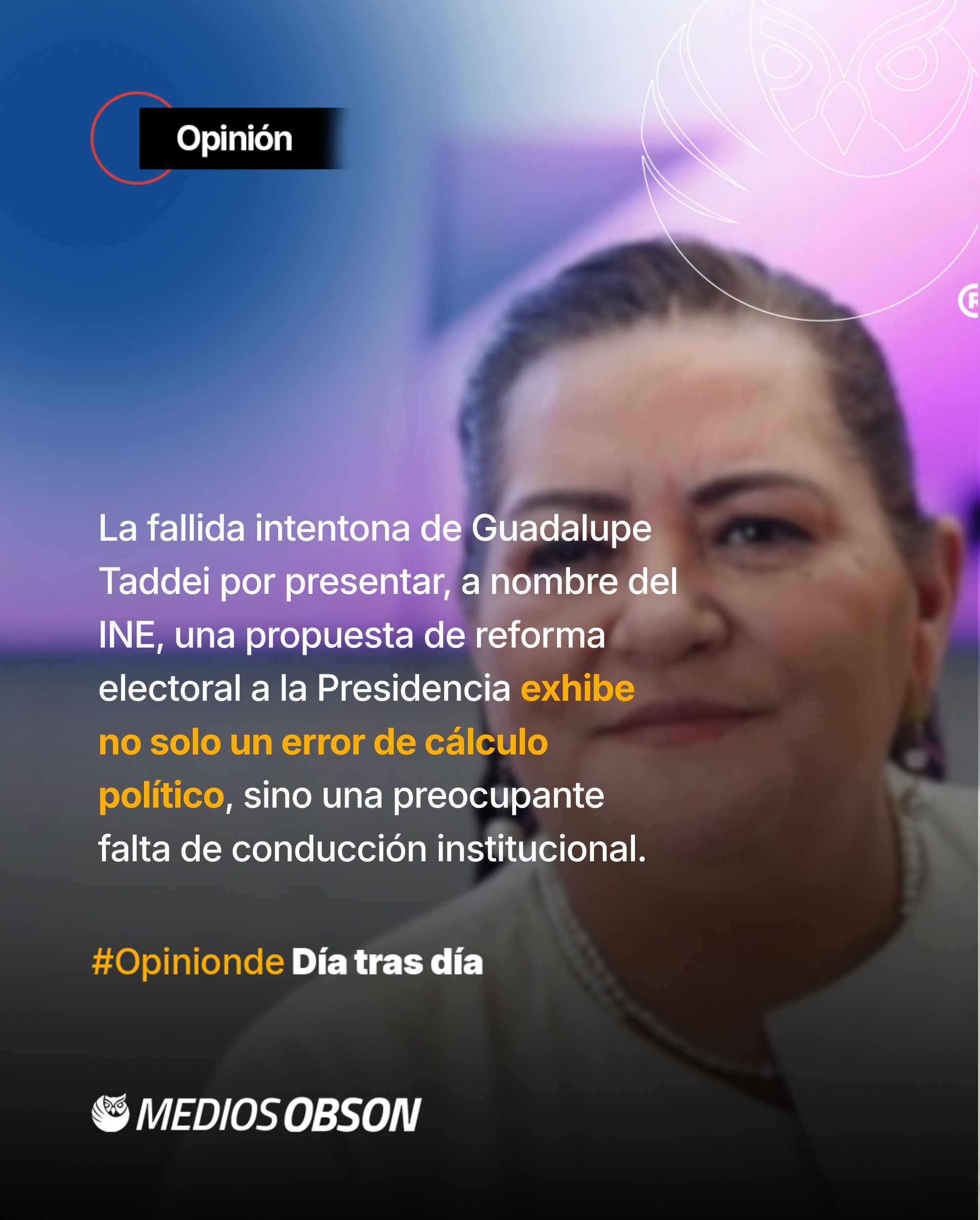 La fallida intentona de Guadalupe Taddei por presentar, a nombre del INE, una propuesta de reforma electoral a la Presidencia exhibe no solo un error de cálculo político, sino una preocupante falta de conducción institucional. Madrugar a los consejeros con dos documentos —uno de 140 páginas y otro de 429— sin consenso previo, sin sustento jurídico sólido y con ideas calificadas internamente como “ocurrencias”, terminó generando exactamente lo contrario a lo que la presidenta buscaba: unidad. El rechazo de al menos ocho consejeros no es un desacuerdo menor, es una señal de alarma sobre la forma en que se pretende construir una reforma del tamaño de la que exige el país. La propia Taddei tuvo que recular y aceptar que su propuesta no podía ser presentada como la postura del Instituto, reduciéndose a un documento de consulta. Ahora, el compromiso es trabajar una propuesta definitiva para el 12 de enero, con observaciones que las consejerías deberán entregar desde este jueves. Lo ocurrido revela un INE que, en lugar de encabezar con firmeza la discusión sobre el futuro del sistema electoral, parece debatirse entre improvisaciones y tensiones internas.
