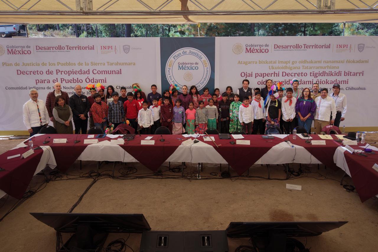“Estamos una vez más aquí en la Sierra, ahora con el pueblo Ódami, para entregar tierra. Se trata de entregarles lo que siempre fue de ustedes, pero que no había sido reconocido: 3 mil hectáreas que se están entregando el día de hoy para que ustedes puedan reconocerse y hacer justicia en el territorio, justicia territorial. Esto es parte del Plan de Justicia de los pueblos de la Sierra Tarahumara”, informó.