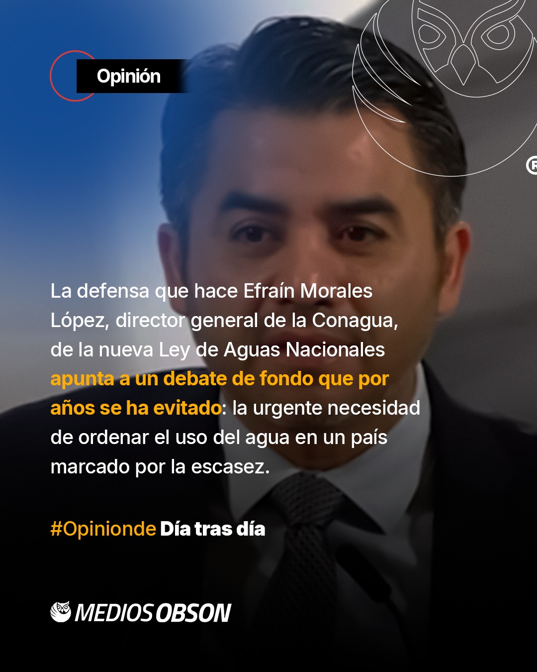 La defensa que hace Efraín Morales López, director general de la Conagua, de la nueva Ley de Aguas Nacionales apunta a un debate de fondo que por años se ha evitado: la urgente necesidad de ordenar el uso del agua en un país marcado por la escasez, sin convertir al productor agrícola en chivo expiatorio. Frente a la desinformación que ha circulado, el funcionario acierta al aclarar que la reforma no elimina derechos ni impide heredar, vender o rentar tierras con concesión, sino que busca cerrar la puerta a abusos históricos tolerados por la omisión del Estado. La promesa de emitir nuevos títulos de concesión en un máximo de 20 días representa un avance administrativo relevante frente a la burocracia que antes asfixiaba al campo. Sin embargo, el reto no está solo en el texto legal, sino en su aplicación justa y transparente. La revisión de más de medio millón de títulos y la detección de concesiones irregulares revelan un sistema profundamente distorsionado, donde algunos lucraron con el agua mientras otros cumplían la ley. Si la reforma logra castigar a quienes acaparan y venden ilegalmente el recurso, sin criminalizar la producción, puede convertirse en una herramienta de equidad hídrica.
