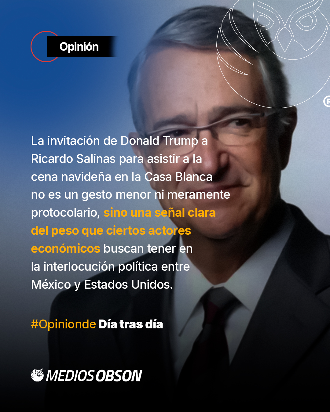 La invitación de Donald Trump a Ricardo Salinas Pliego para asistir a la cena navideña en la Casa Blanca no es un gesto menor ni meramente protocolario, sino una señal clara del peso que ciertos actores económicos buscan —y logran— tener en la interlocución política entre México y Estados Unidos. Que un empresario mexicano se asuma públicamente como “puente” en la relación bilateral abre un debate necesario sobre los límites entre diplomacia formal, intereses privados y representación nacional. En un contexto internacional marcado por tensiones comerciales, migratorias y de seguridad, la cercanía de Salinas Pliego con círculos de poder en Washington, Florida y Mar-a-Lago refleja cómo el capital económico puede traducirse en capital político, incluso fuera de los cauces institucionales tradicionales. No se trata de cuestionar la legitimidad de los encuentros privados, sino de reconocer que estos espacios suelen privilegiar agendas específicas, como la seguridad jurídica para la inversión, por encima de otras prioridades sociales. La escena también deja ver una constante histórica: mientras los gobiernos cambian, ciertos empresarios mantienen acceso directo a los centros de decisión, consolidando una influencia que trasciende administraciones y colores partidistas.