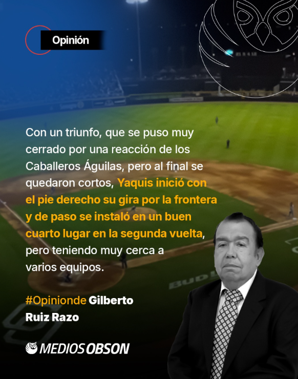CEARRADO.- Con un triunfo, que se puso muy cerrado por una reacción de los Caballeros Águilas, pero al final se quedaron cortos, Yaquis inició con el pie derecho su gira por la frontera y de paso se instaló en un buen cuarto lugar en la segunda vuelta, pero teniendo muy cerca a varios equipos que pretenden echarlos hasta un octavo sitio si ceden terreno, incluso allá mismo en Mexicali, una aduana que a través del tiempo se les ha complicado.