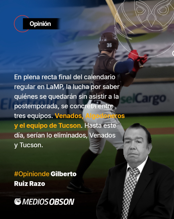 SE ACABA.- En plena recta final del calendario regular en LaMP, la lucha por saber quiénes se quedarán sin asistir a la postemporada, se concreta entre tres equipos. Venados, Algodoneros y el equipo de Tucson. Hasta este día, serían lo eliminados, Venados y Tucson. Pero aun cuando Algodoneros se salvarían, están en la pelea por irse este 30 de diciembre pues necesitan una buena racha ganadora para que suban en la tabla y lograr escaparse de quedar fuera.