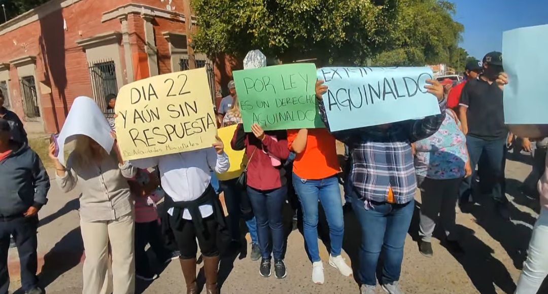Durante la protesta, los empleados exhibieron pancartas con mensajes como: “El aguinaldo es un derecho” y “Seguimos sin respuesta”.