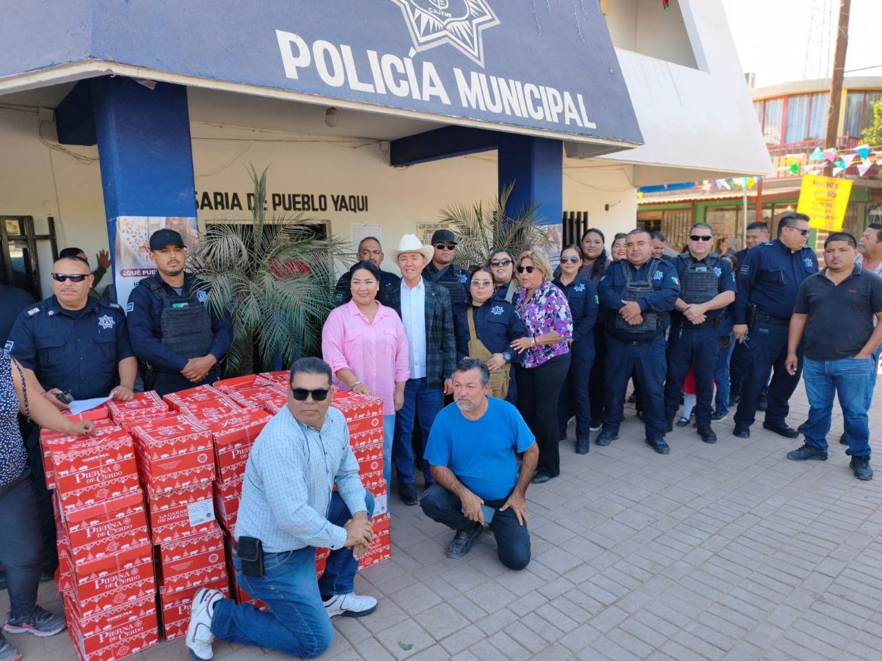 Con el objetivo de reconocer la labor diaria de quienes velan por la seguridad y el orden en el área rural, elementos de la Policía Municipal y personal administrativo de la Comisaría de Pueblo Yaqui recibieron presentes con motivo de las celebraciones decembrinas.