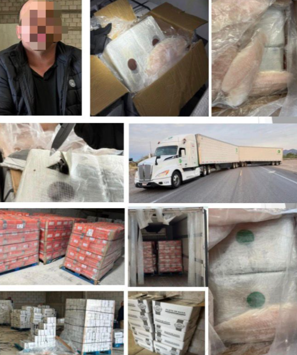 Los hechos ocurrieron sobre la carretera federal número 2, tramo Caborca-Sonoyta, donde personal de seguridad detectó un tractocamión con dos cajas refrigeradas que transportaba la droga oculta en 400 paquetes, camuflados en cajas de pescado congelado al alto vacío.