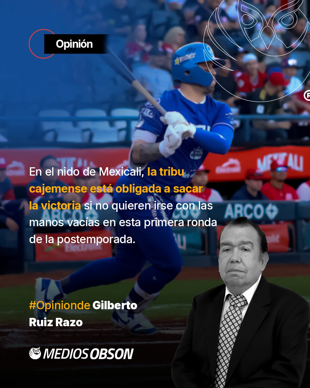 CONTROLADOS.- La tribu que comanda Gabe Álvarez, ha sido maniatada por los serpentineros de los fronterizos. Se ha visto a un equipo que no puede descifrar los envíos de sus oponentes, sobre todo a la hora que se necesitan los batazos para enviar carreras a la registradora. Han caído en juegos apretados, por eso, no batear a la hora de la verdad y así, es muy difícil sacar los resultados favorables. HOY.- Para esta noche, en El Nido de Mexicali, la tribu cajemense está obligado a sacar la victoria si no quieren irse con las manos vacías en esta primera ronda de la postemporada. Hace un año también se fueron en esa ronda, pero al menos pusieron en aprietos a Naranjeros en ese momento. En esta ocasión, han fallado sobre todo a la ofensiva donde ni los que ya estaban, ni los refuerzos de última hora que tomaron, han logrado aportar para ayudar al pitcheo.