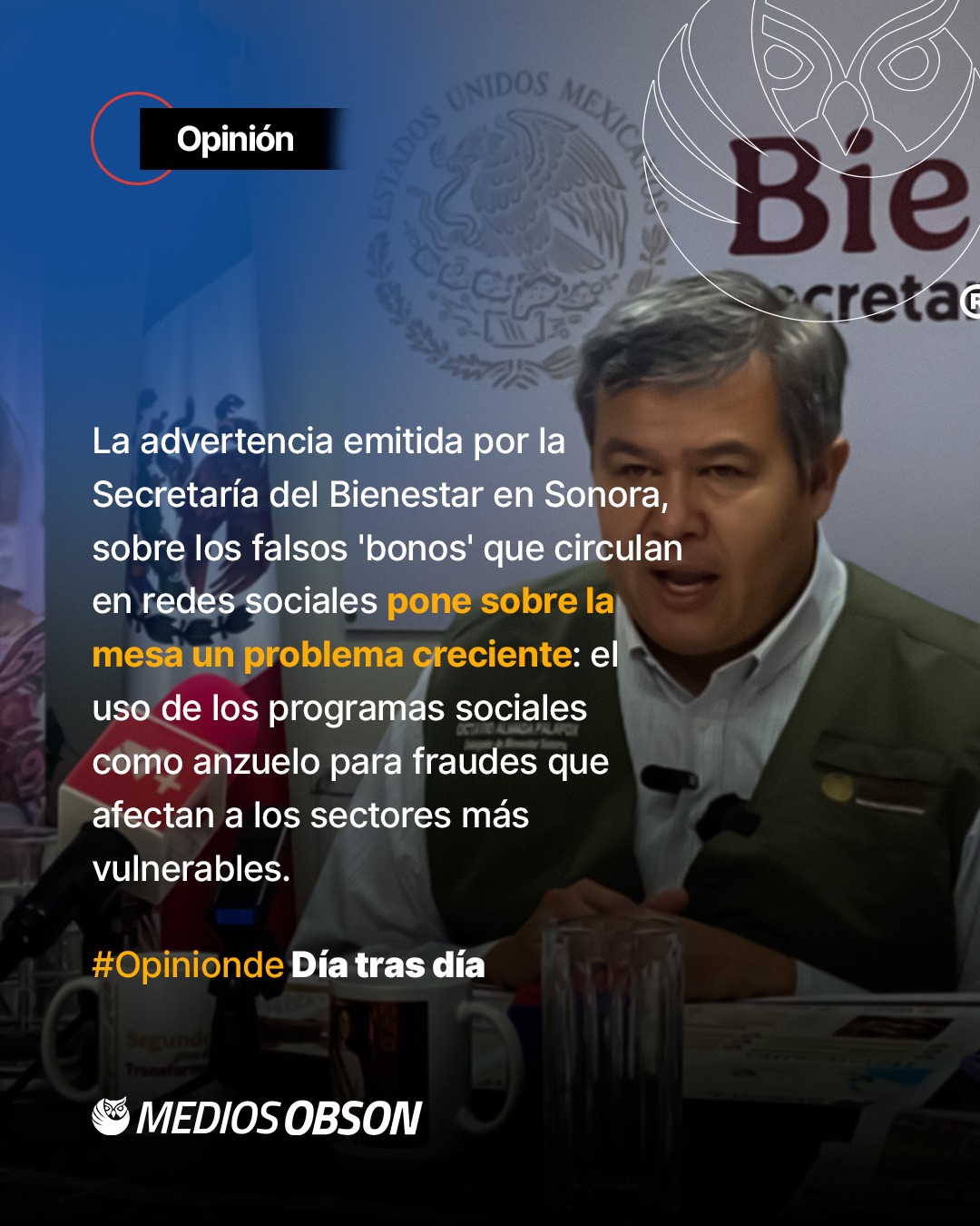 La advertencia emitida por el delegado de la Secretaría del Bienestar en Sonora, Octavio Almada Palafox, sobre los falsos ‘bonos’ que circulan en redes sociales pone sobre la mesa un problema creciente: el uso de los programas sociales como anzuelo para fraudes que afectan principalmente a los sectores más vulnerables. El supuesto ‘Bono Mujer Bienestar de $2,750’, atribuido falsamente a un anuncio de la presidenta Claudia Sheinbaum Pardo, evidencia cómo la desinformación y la urgencia económica pueden convertirse en terreno fértil para el engaño. Estos fraudes no solo buscan datos personales o bancarios, sino que erosionan la confianza ciudadana en las instituciones y en los apoyos legítimos que sí existen. Por ello, resulta indispensable que la comunicación oficial sea constante, clara y accesible, y que la población refuerce una cultura de verificación antes de compartir o responder a mensajes dudosos. La responsabilidad no recae únicamente en la autoridad, sino también en la sociedad, que debe entender que ningún programa del Bienestar se tramita mediante enlaces desconocidos o solicitudes informales por teléfono. Informarse exclusivamente en canales oficiales y desconfiar de promesas inmediatas es hoy una forma básica de autoprotección.