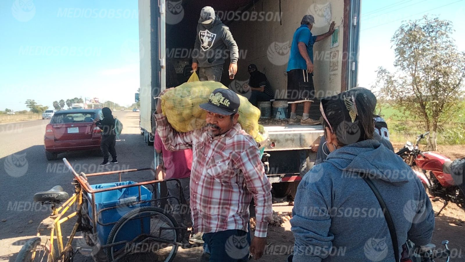 En un acto de solidaridad que sorprendió a los habitantes de Pueblo Yaqui, un tráiler cargado con papa llegó a la entrada principal de esta comisaría para ser entregado de manera gratuita.