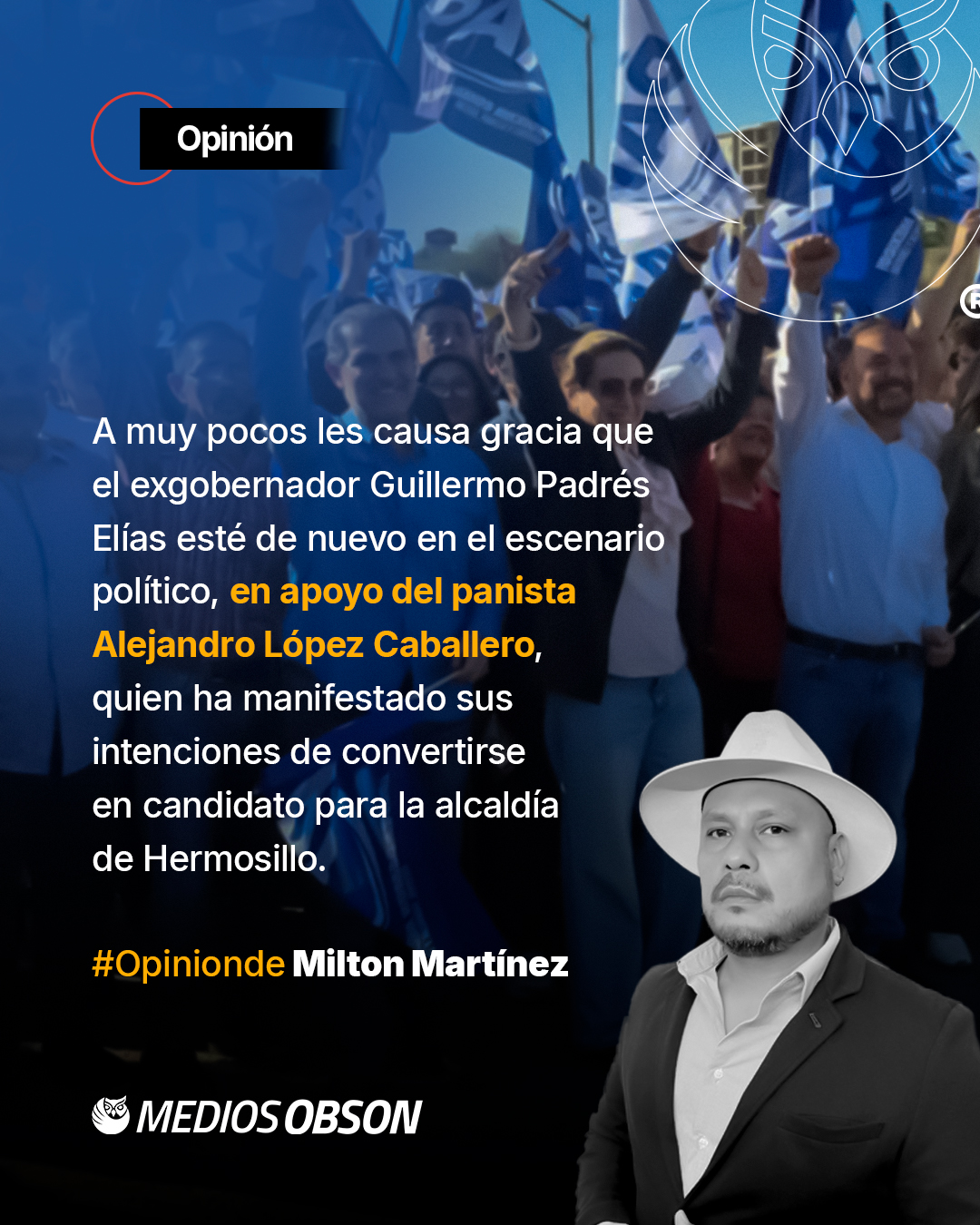 A muy pocos les causa gracia que el exgobernador Guillermo Padrés Elías esté de nuevo en el escenario político, en apoyo del panista Alejandro López Caballero, quien ha manifestado sus intenciones de convertirse en candidato para la alcaldía de Hermosillo por segunda ocasión.