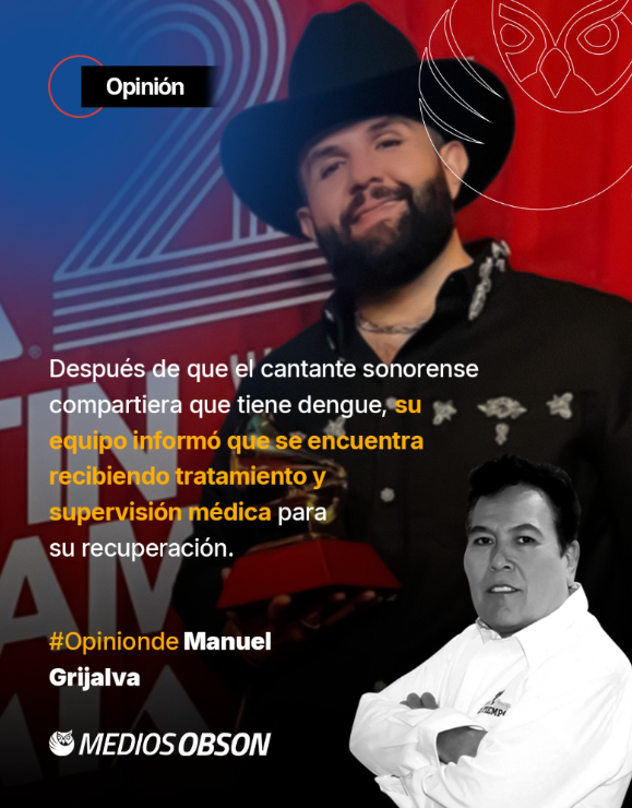Solo un verdadero amigo es capaz de hacer que veas luz dónde tú solo ves oscuridad… Carin León ha demostrado no ser ‘de palo’, – es decir, – que no es insensible o inmune a las emociones, ni a las enfermedades, eso al mostrar su faceta más humana, vulnerable y honesta, alejándose de la imagen perfecta que a veces se espera de las celebridades… como ‘cualquier mortal’, el cantante sonorense ha enfrentado retos personales y emocionales que ha compartido con su público, desde síntomas de ansiedad y depresión, hasta inseguridad, ahora se enfrenta a una enfermedad infecciosa causada por un virus y transmitida a los humanos a través de la picadura del mosquito infectado ‘Aedes aegypti’, – mejor y más conocida como Dengue, – el equipo del hermosillense informa que el cantante se encuentra recibiendo tratamiento y supervisión médica para su recuperación, algunos reportes indican que le fue diagnosticado dengue hemorrágico, por lo que requiere cuidados estrictos para garantizar su pronta mejoría… lo bueno y lo mejor es que él no tiene por qué preocuparse, solo de ocuparse de guardar reposo lo más que pueda… al tener una inmensa fortuna a Carin León le da la seguridad de que pronto andará de nuevo trepado en los escenarios haciendo lo que mejor sabe y le gusta hacer, cantar sus canciones y ‘brincotear’ por todos lados… porque ahorita le duele hasta respirar es que no le quedó de otra que disculparse con quienes esperaban disfrutar de su espectáculo ayer jueves 22 y hoy viernes 23 de enero en el Palenque de la Feria de León, Guanajuato, presentaciones que tuvo que posponer a causa del dengue que lo tomó desprevenido, por lo que pide a quienes habían comprado sus boletos que los conserven, ya que andará por allá el jueves 5 y sábado 6 de febrero, prometiéndoles un show único en el que interpretará nuevas canciones… Ningún sueño es muy grande, y ningún soñador muy pequeño… Creo que a todos los que en algún momento de sus vidas han soñado con aparecer en alguna película les ha llegado la oportunidad que tanto esperaban, pues ‘Olympic Films’ se encuentra filmando en nuestra ciudad una película de nombre ‘Los planetas’, es por eso que se encuentran solicitando ‘extras’, a quienes quieran participar se les invita a que mañana sábado 24 de enero acudan con su mejor ‘outfit’ a la calle Guerrero, – enfrente de Plaza Tutuli, – nadie deberá gritar, correr, ni llorar, – mucho menos poner en riesgo su vida, – lo único que harán será caminar mientras el personaje central de esta cinta, – un astronauta, – camina en sentido contrario chocando con los transeúntes, la cita es a las 10 de la noche… en las películas en las que he participado me ha tocado que los ‘extras’ reciben un módico pago por autorizar que su imagen sea usada, aquí me llama la atención que a nadie le pagarán ni un centavo y es que dicen, al ser este un proyecto independiente es que solicitan el apoyo de la ciudadanía… aunque la intención es buena, creo que la locación no es la indicada, bien pudieron haberse ido a caminar a la banqueta del Club Campestre, la cual está completamente destruida o a alguna a calle con más baches de la ciudad, de esas tenemos muchas… Las pequeñas cosas hacen grandes momentos… Etcétera…