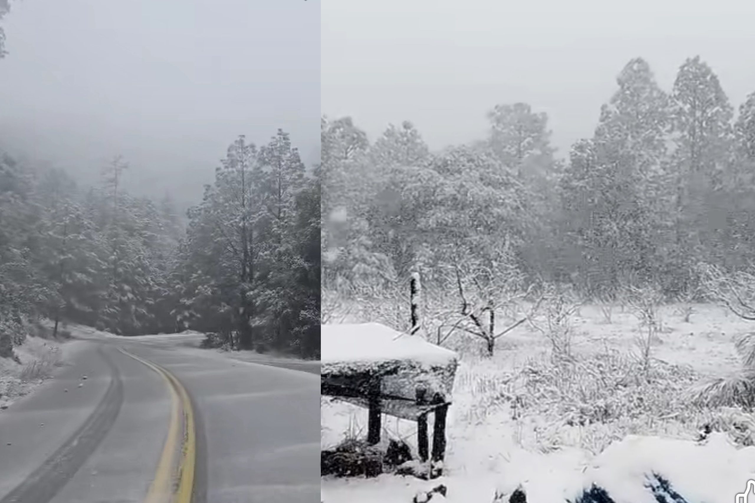 La tarde de este sábado, el paisaje de Yécora se pintó de blanco con la caída de la primera nevada de la temporada, fenómeno que marcó el inicio de un periodo de bajas temperaturas en la región serrana del estado.