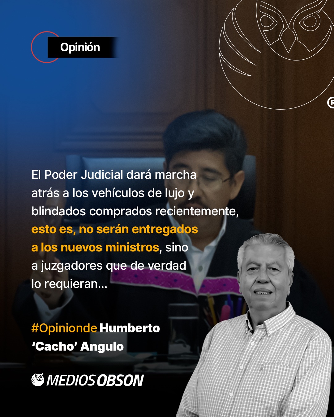 Al parecer el poder judicial dará marcha atrás a los 571 vehículos de lujo y blindados comprados recientemente, esto es no serán entregados a los nuevos ministros y magistrados y algunos jueces, pues se dice solo se les proporcionaran a aquellos funcionarios que realmente estén en peligro de ser atacados por algún cartel por alguna sentencia sobre uno de sus miembros. Ojalá y sea verdad y no terminen en manos de quien no los requiera…