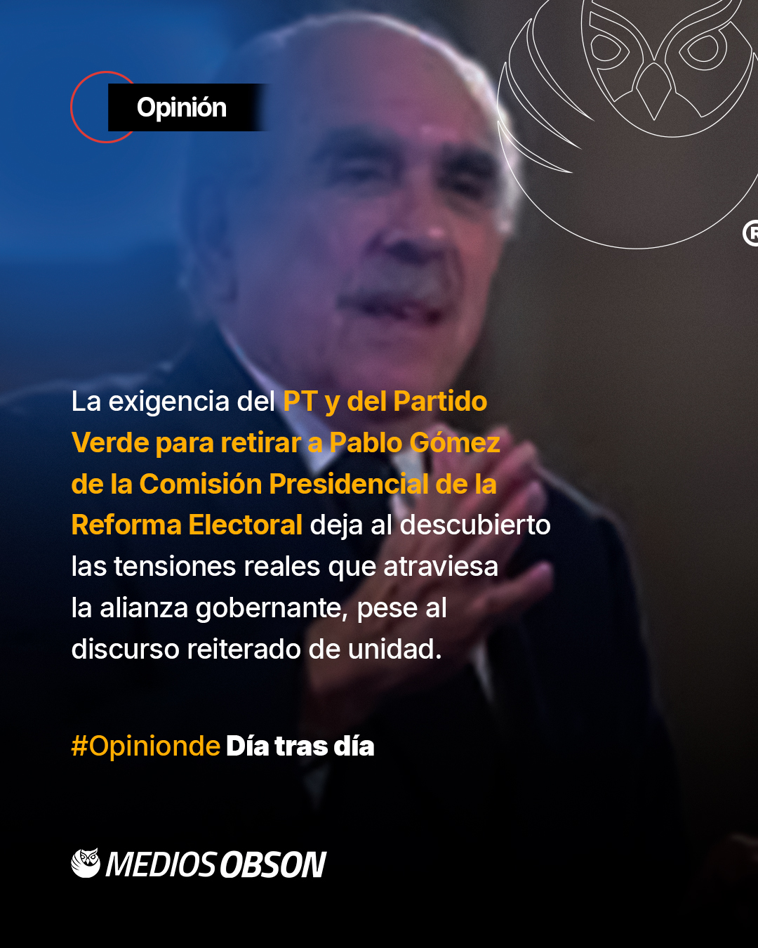 La exigencia del PT y del Partido Verde para retirar a Pablo Gómez de la Comisión Presidencial de la Reforma Electoral deja al descubierto las tensiones reales que atraviesa la alianza gobernante, pese al discurso reiterado de unidad. Más que un problema personal, la figura de Gómez se ha convertido en el símbolo de una reforma que incomoda a los aliados menores de Morena, especialmente cuando toca intereses sensibles como la reducción de prerrogativas y la redefinición de las plurinominales. El ultimátum lanzado por el PT y el Verde revela que, cuando se trata de dinero y supervivencia política, la cohesión de la 4T tiene límites claros. Pablo Gómez, con su estilo frontal y crítico, dejó de ser un mediador funcional para convertirse en un obstáculo en la negociación, no por falta de convicción democrática, sino porque sus planteamientos chocan con la lógica pragmática de los partidos coaligados. Morena enfrenta así un dilema estratégico: ceder para mantener intacta la alianza o sostener una reforma que presume principios, pero amenaza consensos. La posible salida de Gómez no resolverá el fondo del conflicto, sólo aplazará una discusión inevitable sobre hasta dónde está dispuesta la coalición gobernante a sacrificar privilegios propios en nombre de una transformación que, en los hechos, sigue generando resistencias dentro de casa.