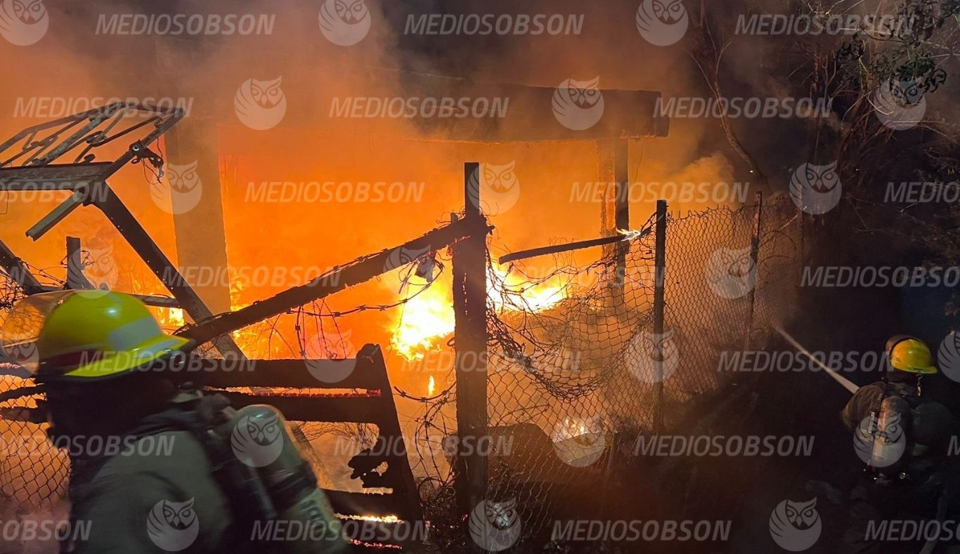 Un incendio registrado durante la madrugada consumió por completo una vivienda ubicada en las calles Nuevo León y 16 de Septiembre, en la colonia 5 de Mayo, donde un hombre tuvo que ser rescatado del techo del inmueble por elementos del Departamento de Bomberos y vecinos del sector.