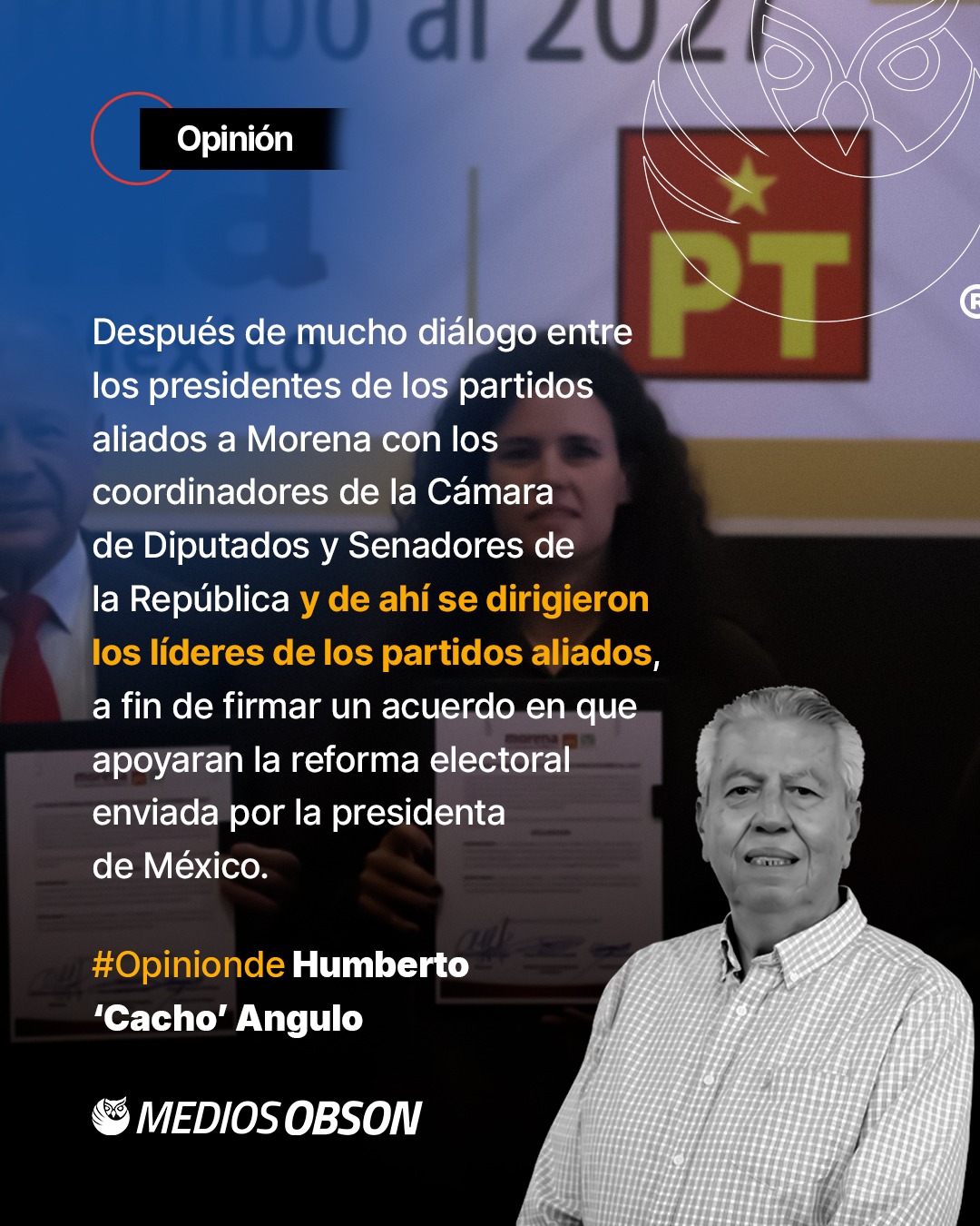 Después de mucho diálogo entre los presidentes de los partidos aliados a Morena con los coordinadores de las cámaras de diputados federales y senadores de la república y de ahí se dirigieron los líderes de los partidos aliados, a fin de firmar un acuerdo en que apoyaran la reforma electoral enviada por la presidenta de México, solo que con algunos importantes modificaciones, primero la reducción de los plurinominales si se hará pero bajo otros acuerdos, y de ello dependerá la reducción de los recursos por partido, lo anterior a cambio de que se les otorguen tres gubernaturas a los partidos PVEM y PT, esto sin dejar claro que si son tres candidaturas para los dos partidos o son tres para cada uno de ellos, por lo pronto se dijo que el PT obtendrá la candidatura a la gubernatura pero no para los Monreal, pero en cambio si va la senadora de San Luis Potosí, esposa del gobernador. Investigaremos bien como es realmente esta situación…