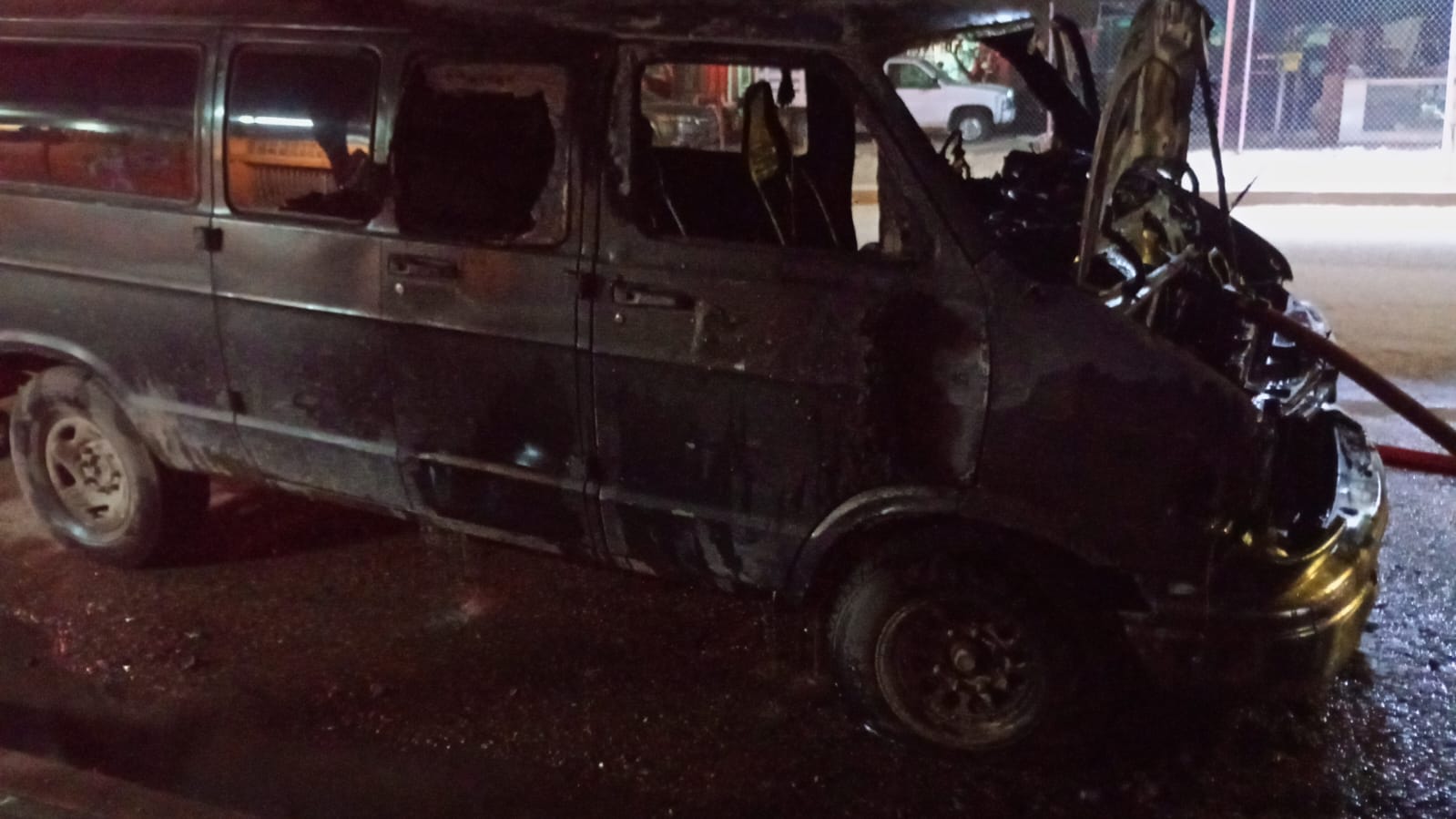 Un vehículo tipo van utilizado para el traslado de jornaleros se incendió la noche del martes en el cruce de las calles 5 de Mayo y Aquiles Serdán, generando una intensa movilización de cuerpos de emergencia debido al riesgo de explosión.