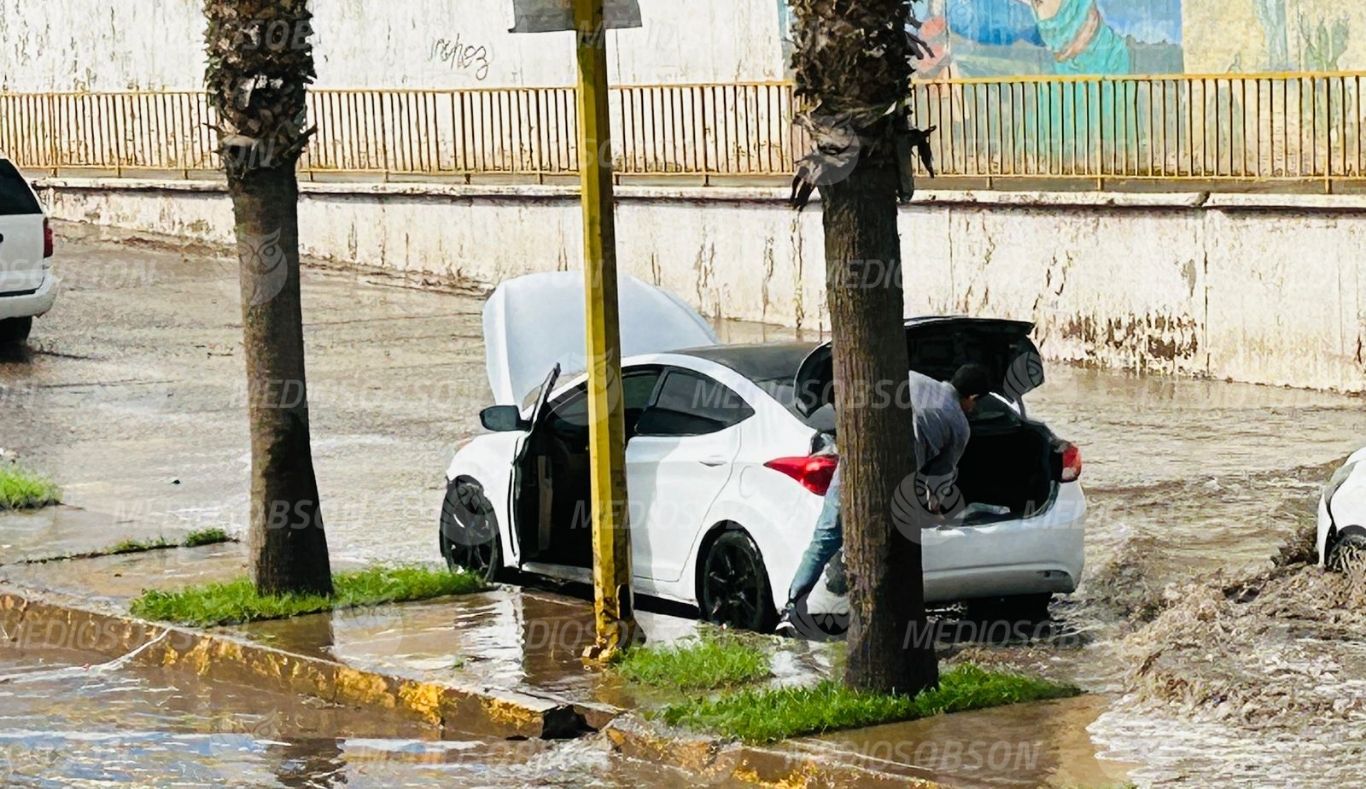 Empleados del ayuntamiento de Cajeme, indicaron que el tubo de succión instalado en el lugar está funcionando, por lo que se espera que en los próximos minutos el nivel del agua se desvanezca.